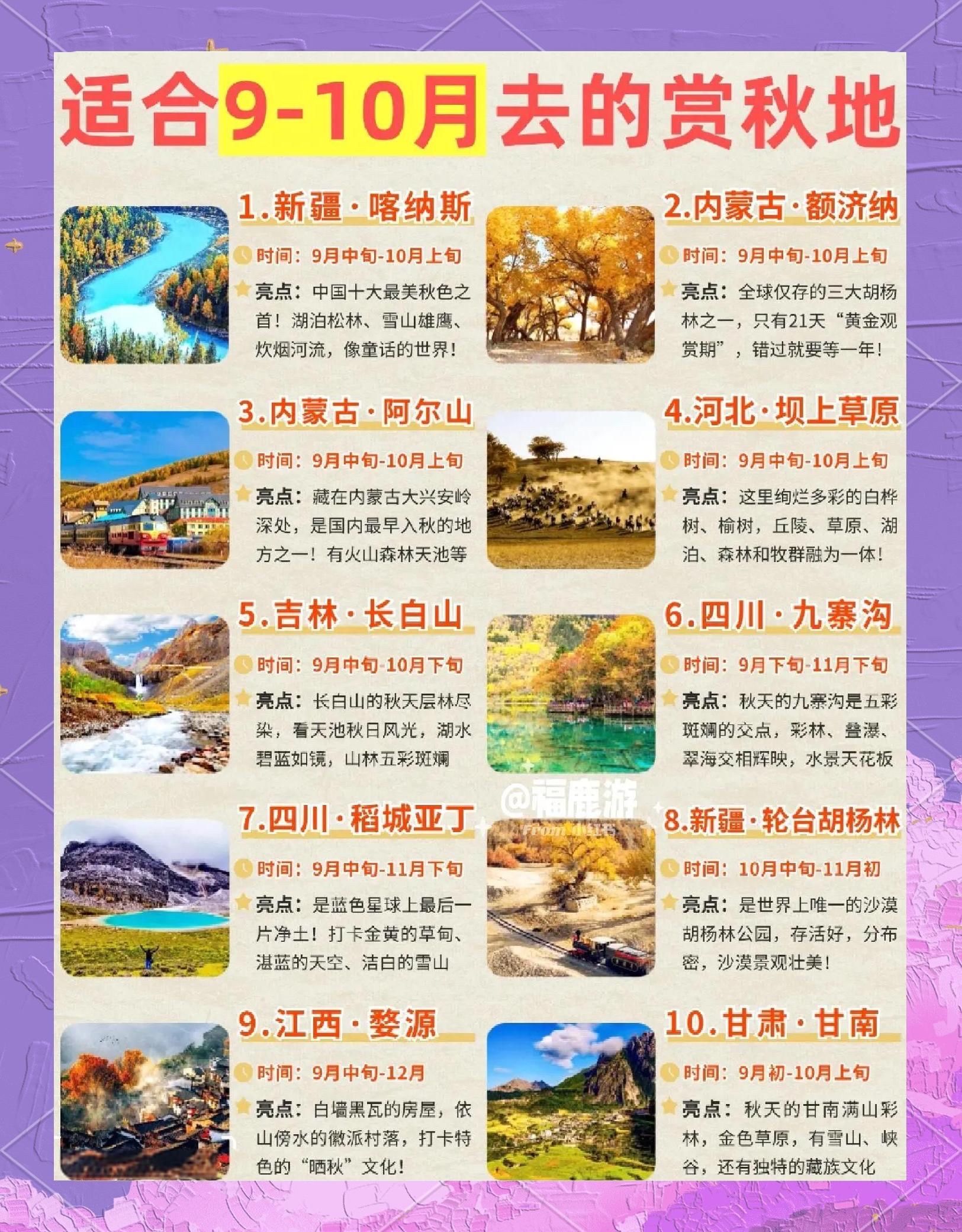 秋天到了,国内这十大赏秋胜地不容错过。秋风起,心已动,一场说走就走的旅行,正当时。