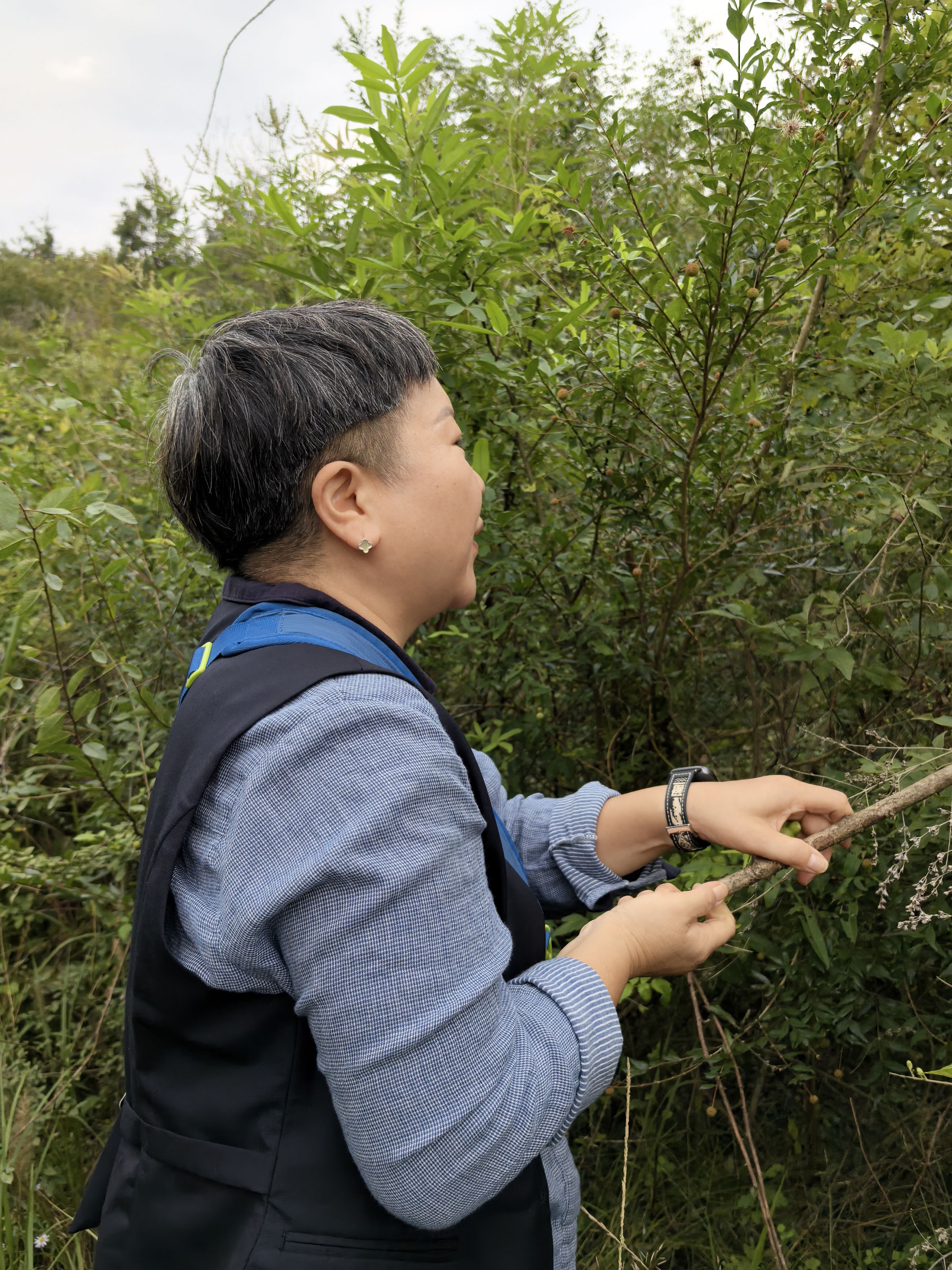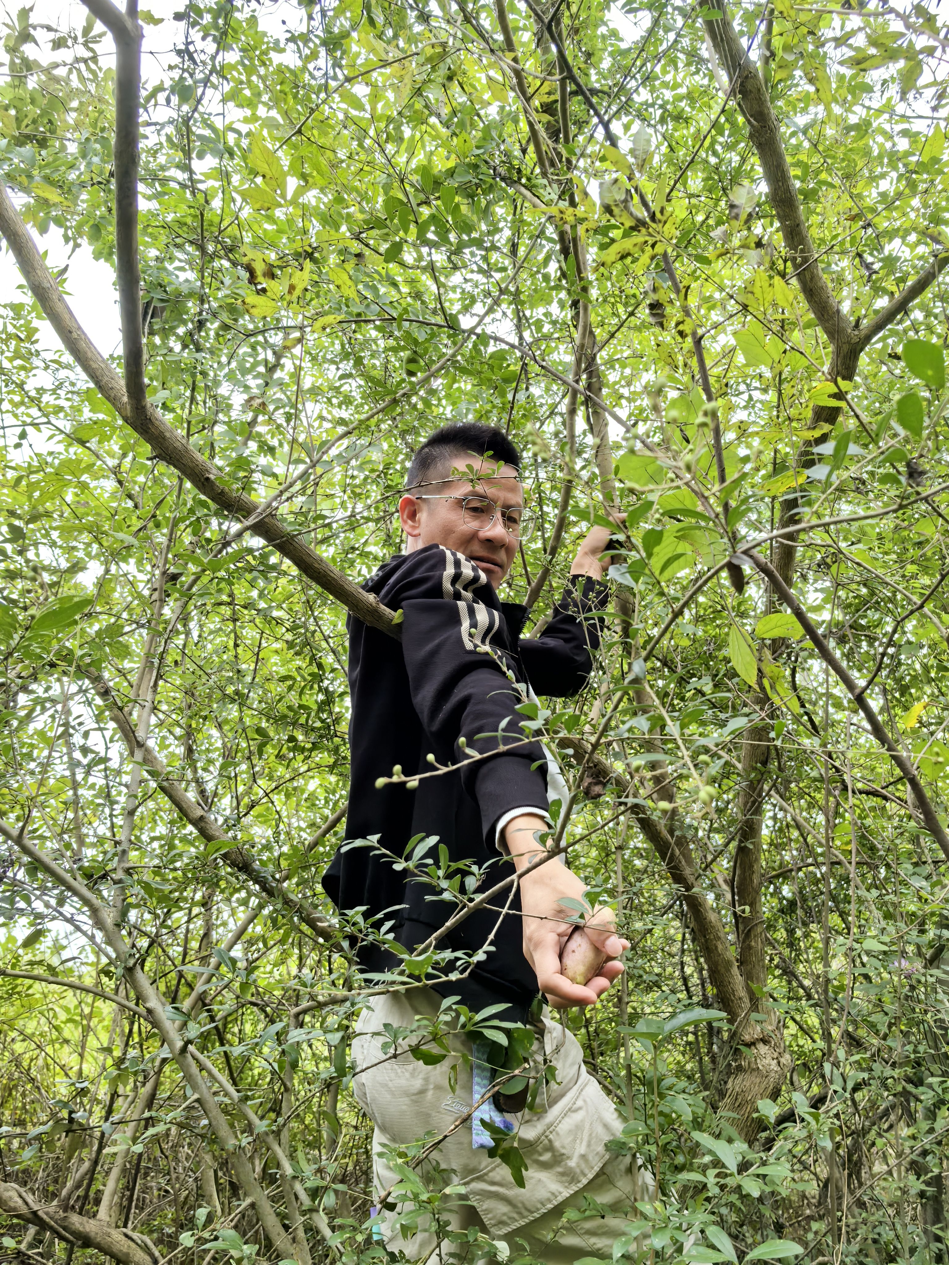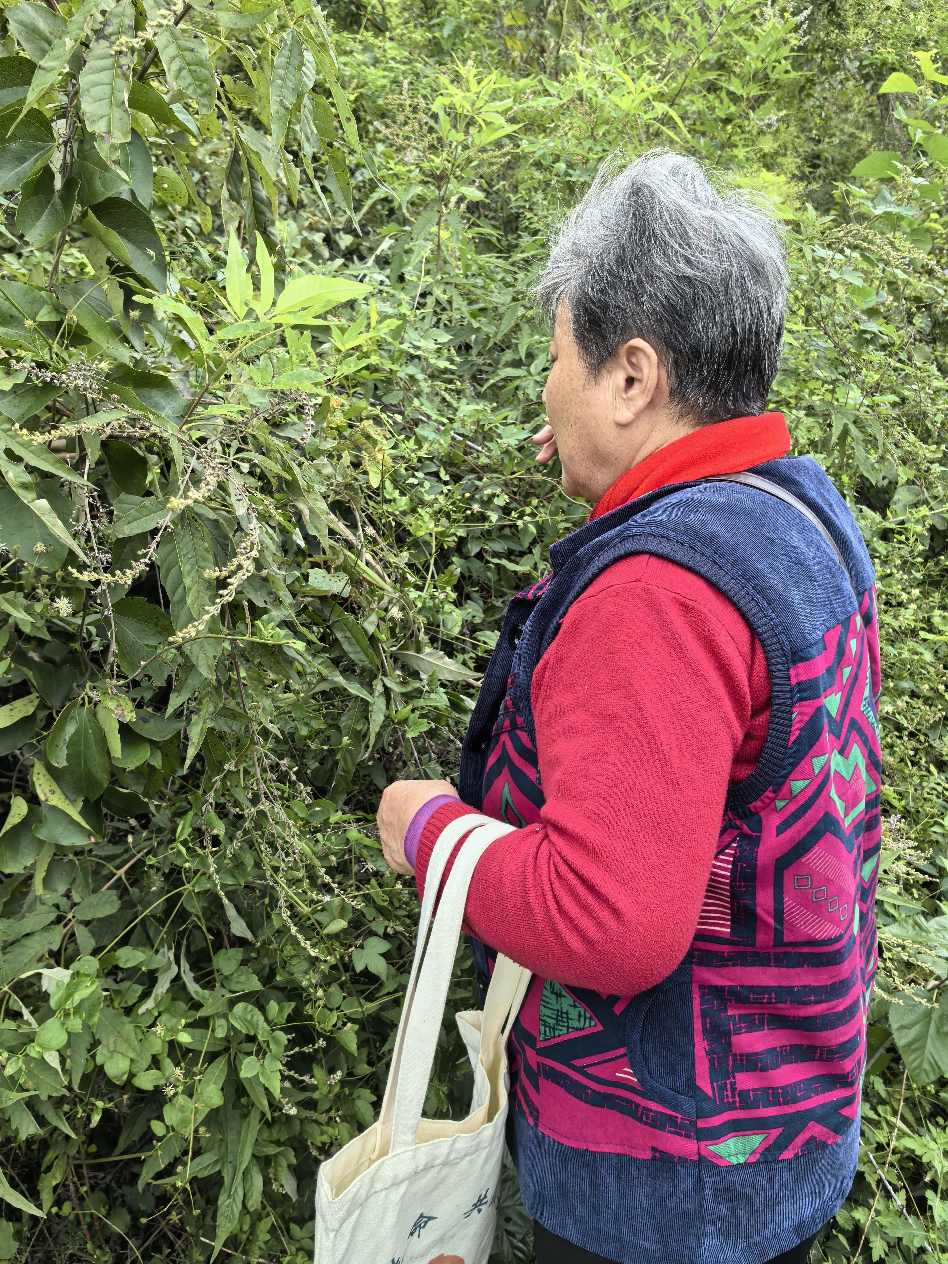 在山下农庄吃饭,看到有人拎着塑料袋,里面装了一些松茸菌,姐姐特别遗憾地说:“哎呀哎呀,只顾着盯着头上的树看了,都没有看脚底下,我们也应该拿树棍子巴拉巴拉,看看有没有菌子。”