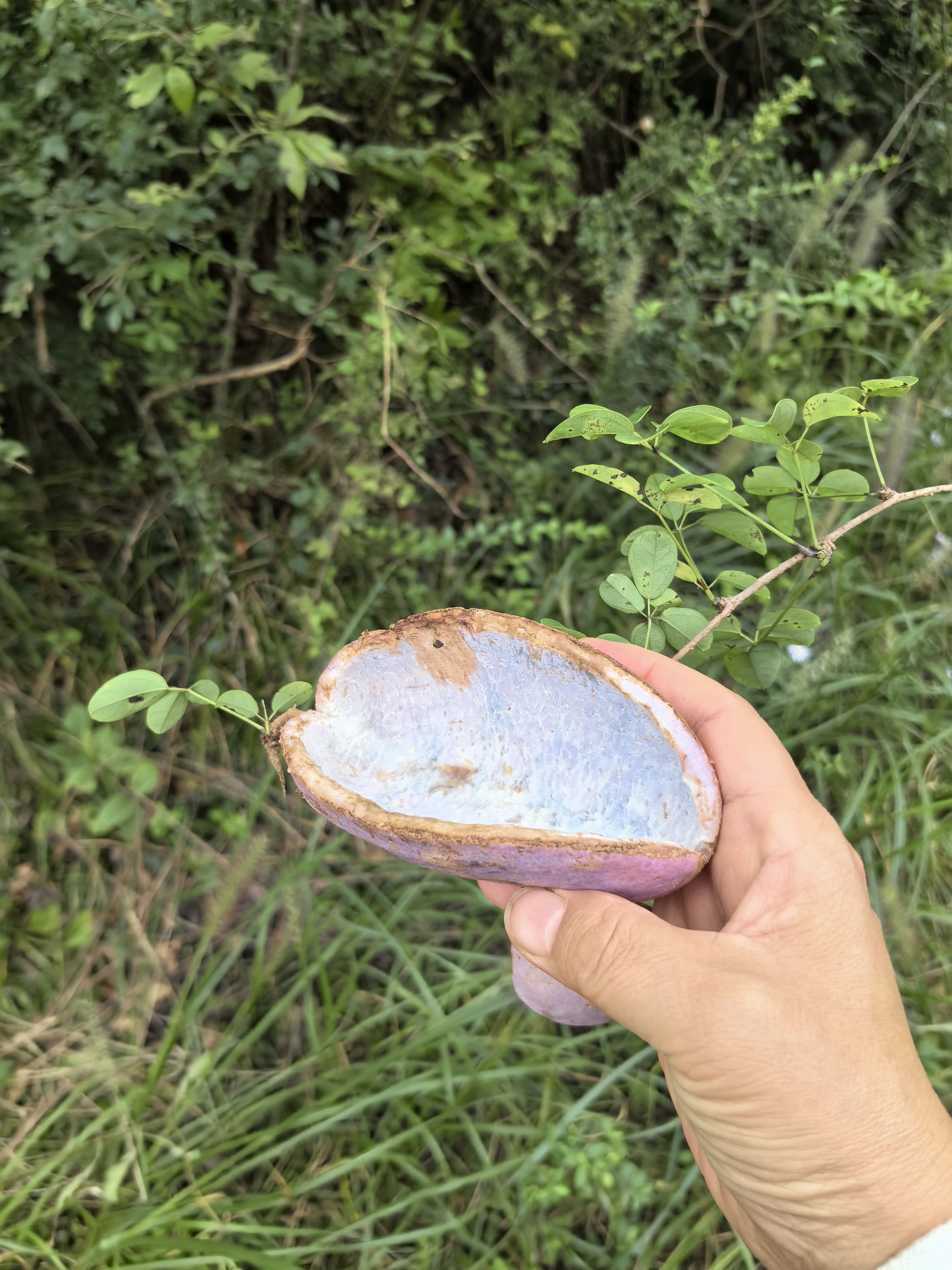 可惜啊,来的时机不对,粉色的八月炸都炸裂完了,另外一个品种的还是翠绿色的没有成熟,拨开一个,尝了一口,好苦啊。
