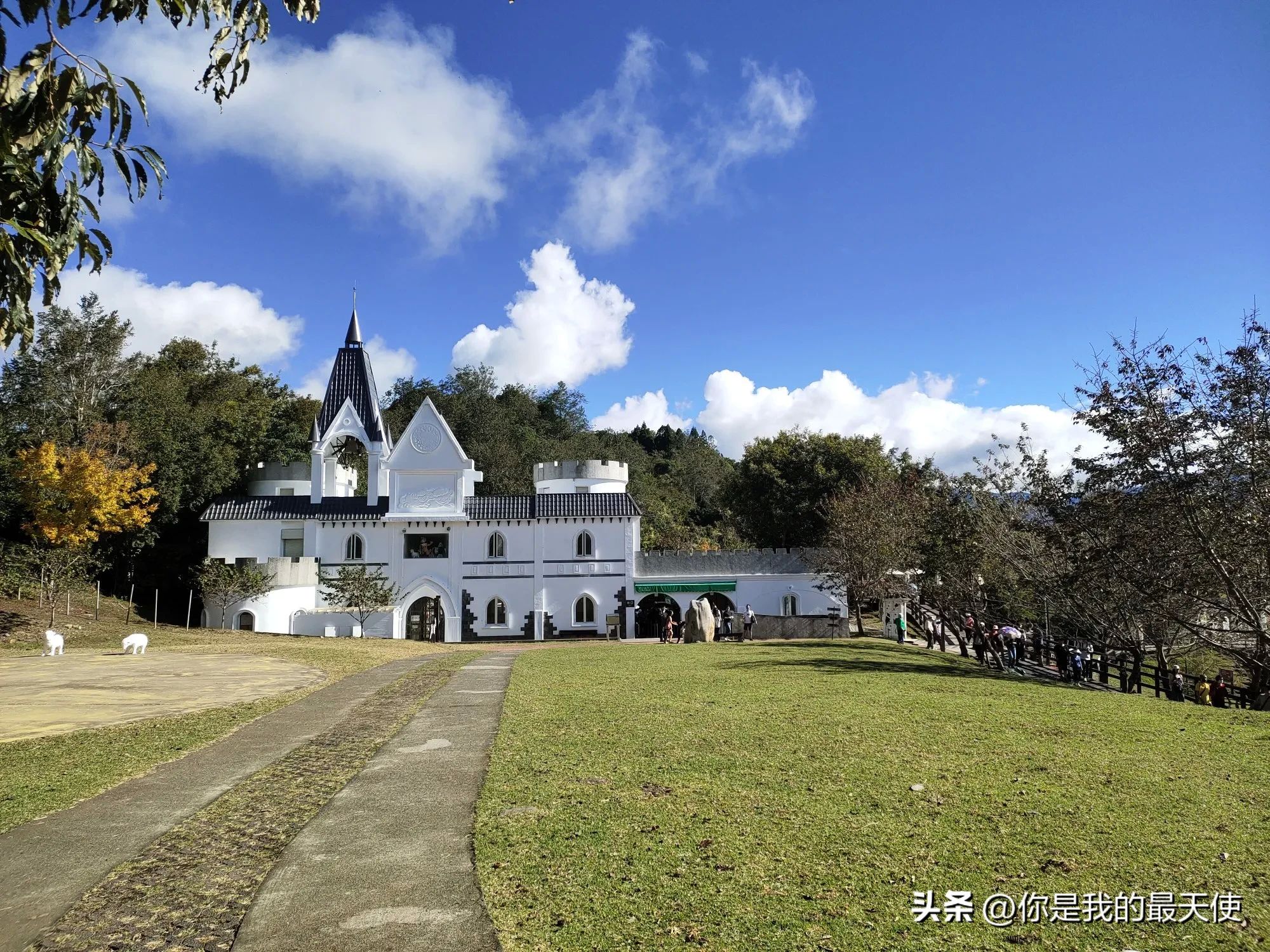 带有欧式建筑风格的小瑞士公园,座落在山林间,在清澈湛蓝的天空和洁白云朵的映衬下如同童话里的小城堡,让人忍不住想要拍照留念。