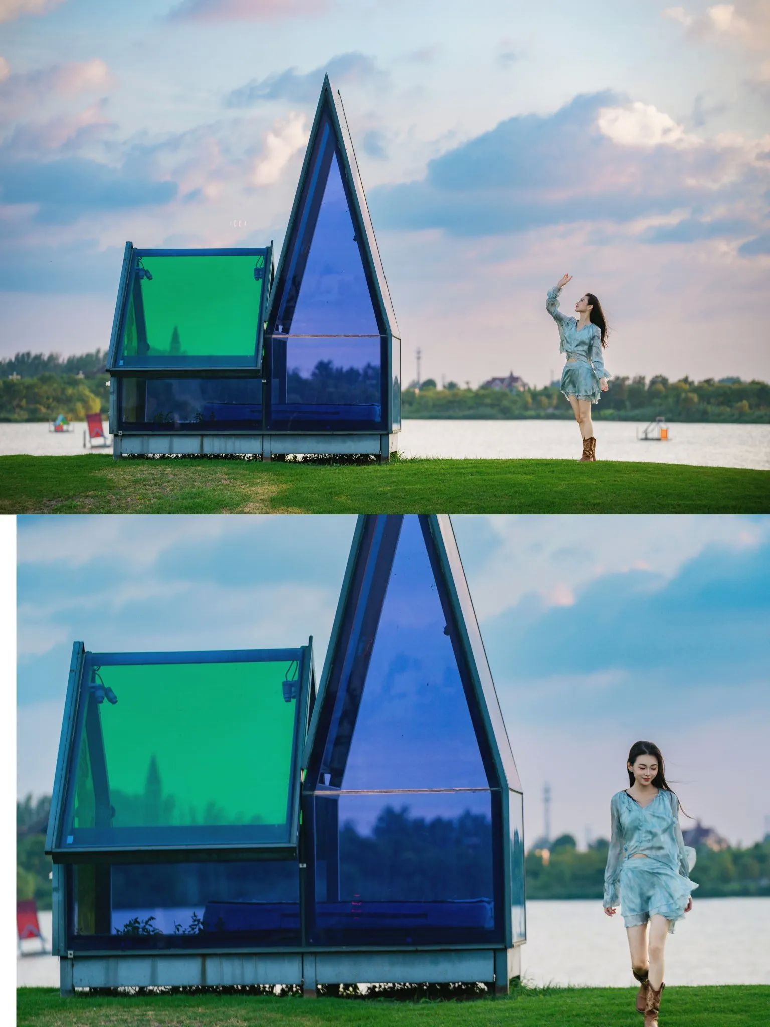 傍晚入园已经没那么热了,正好游园拍花。日落在如心剧场方向落下,整个园内都很暖色调,很好拍,拍花海或者彩色小房子都很好看。