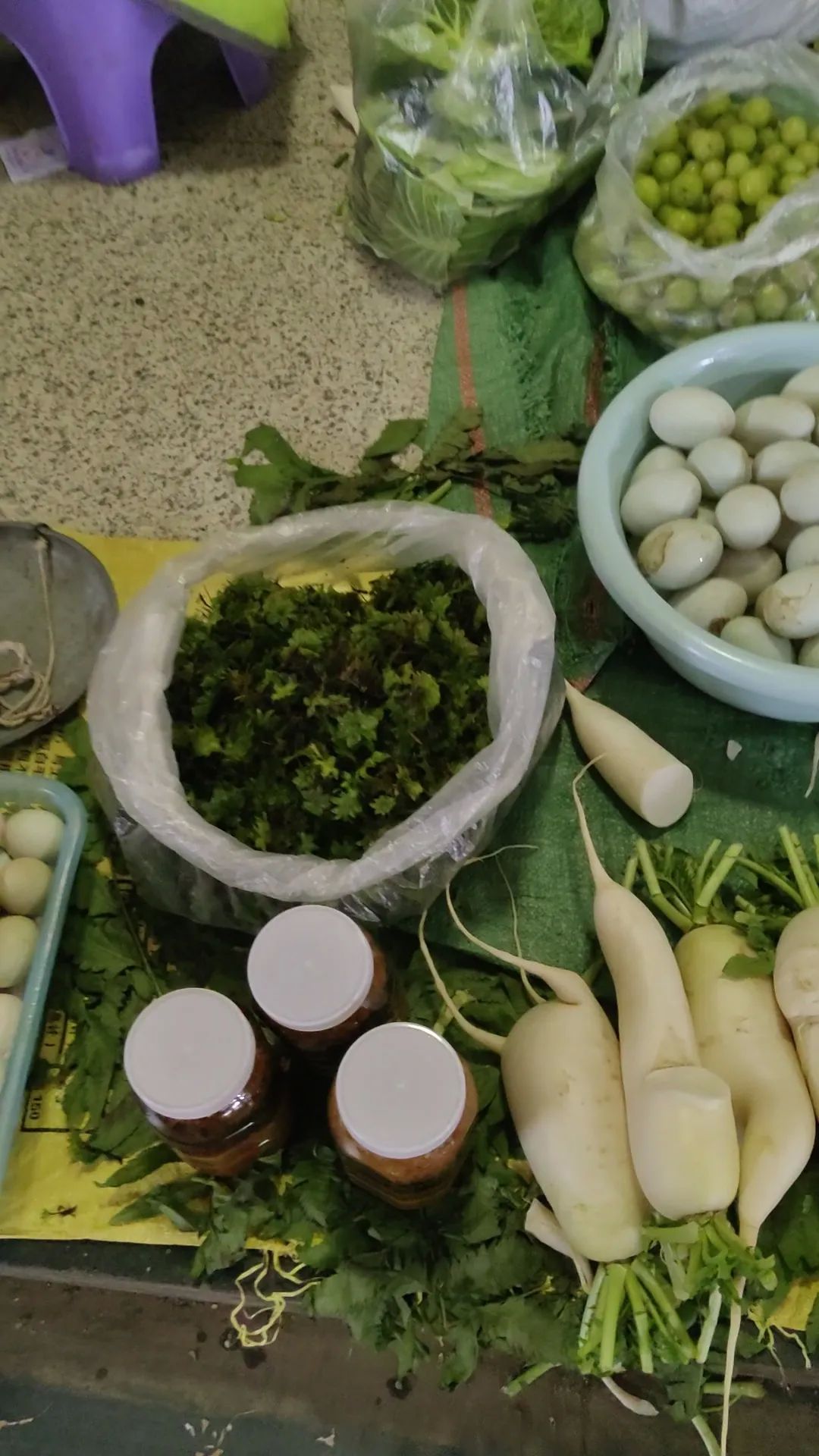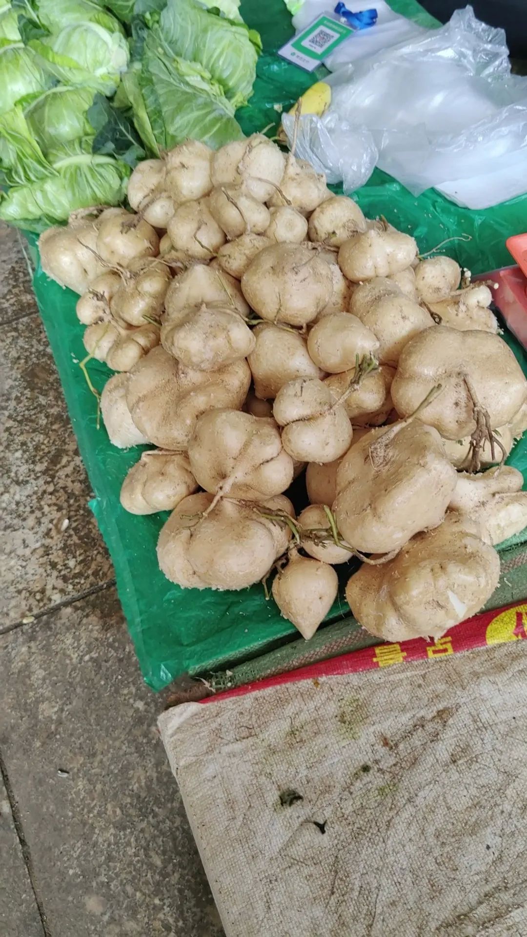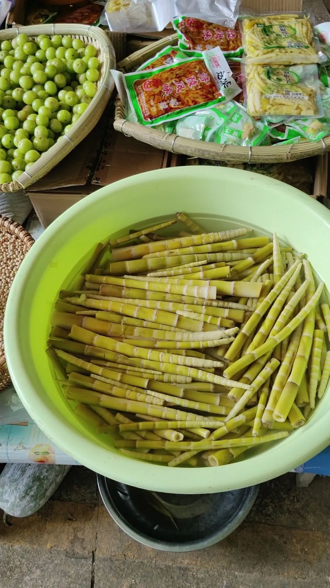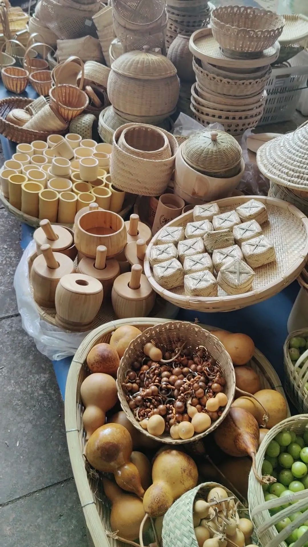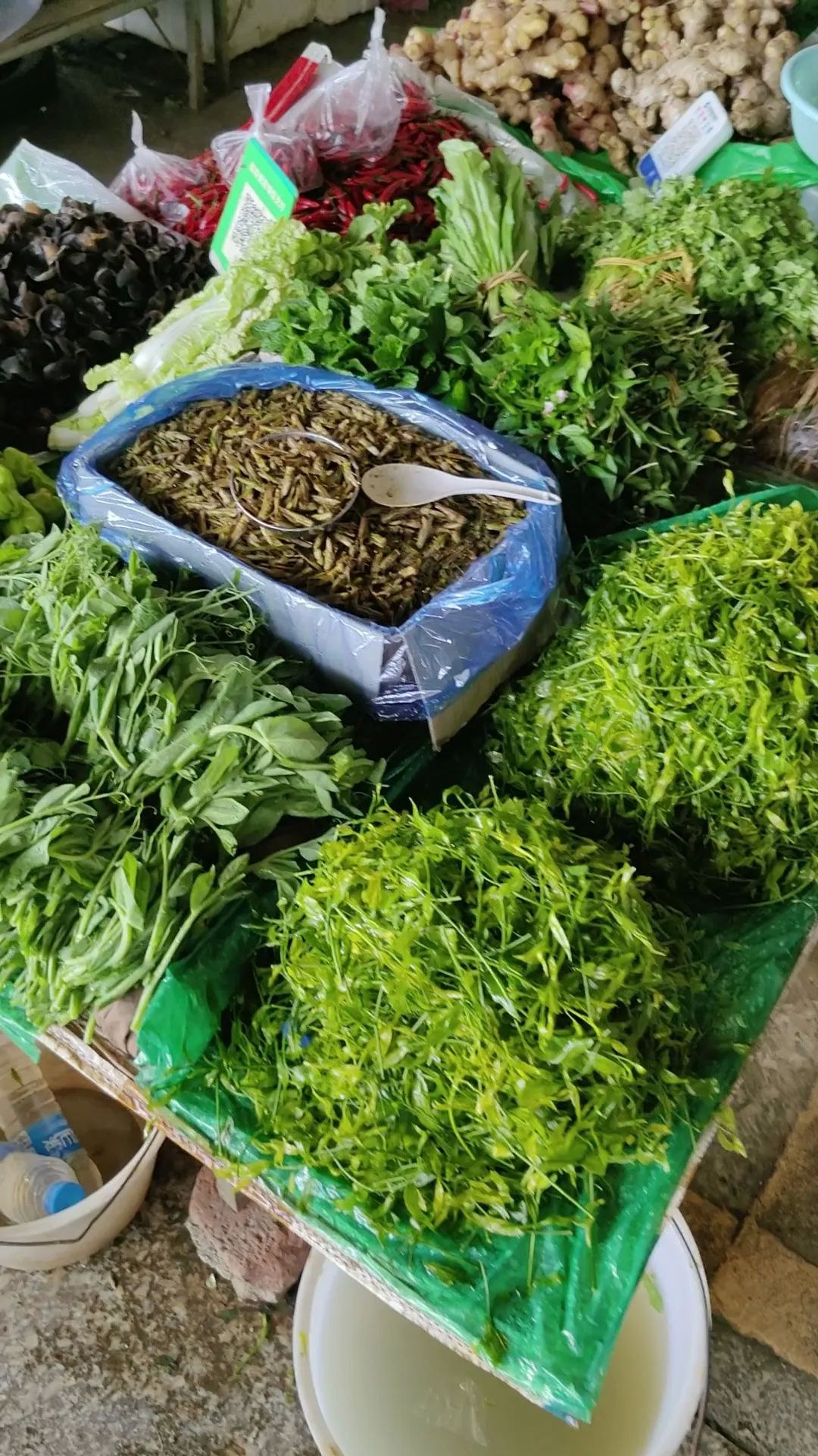 沿着楼梯拾级而上,来到二楼,你会瞬间被一股浓郁的烟火气息所包围。这里简直就是一个生活宝藏的聚集地,蔬菜区里,元江苦菜、苦凉菜、苦子、刺五加、马蹄叶、四区白菜、折耳根等各类蔬菜应有尽有。这些蔬菜可不简单,它们不仅是餐桌上的美味佳肴,更具有清热解毒等药用功效,是大自然赐予元江人民的健康瑰宝。山茅野菜更是丰富多样,黏扎扎、野生山药、甜菜、臭菜、刺竹笋、豆屁股果、弯根、弯根花、荠菜、蒲公英、车前草、灰灰菜、明国菜、各种野花菜等,它们或鲜嫩翠绿,或形状奇特,每一种都承载着元江这片土地的独特风味,让你品尝到不一样的野生蔬菜盛宴。