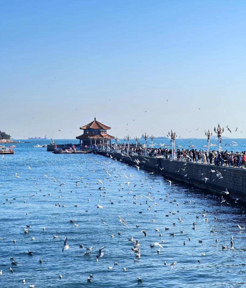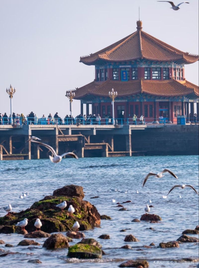 • 栈桥:青岛标志性建筑,清晨可喂海鸥,欣赏海景与回澜阁。