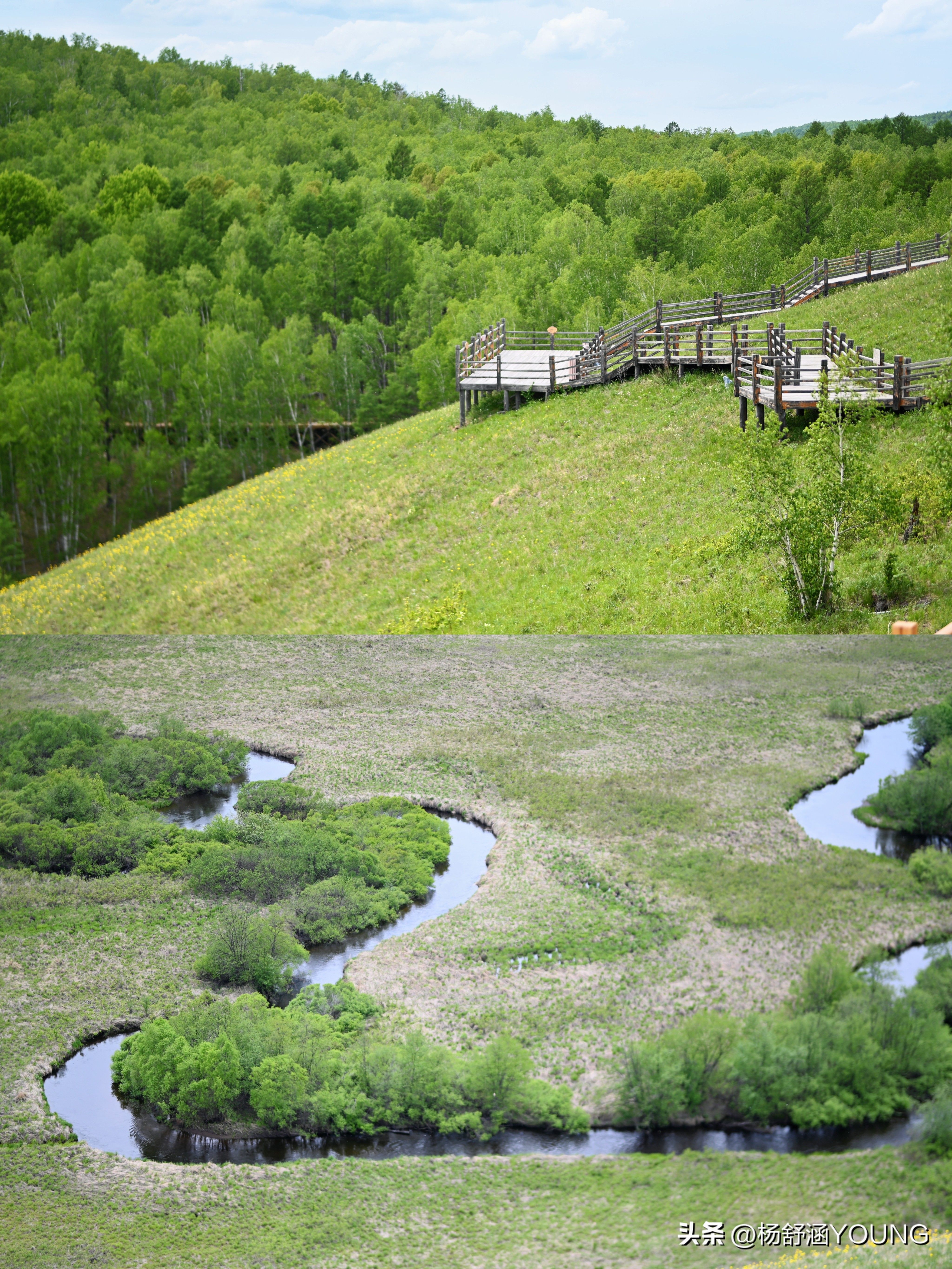 “森林曲水之最”的视觉盛宴:登顶观景台,俯瞰蜿蜒曲折的哈乌尔河在草原与林带间自然流淌,景色壮丽。