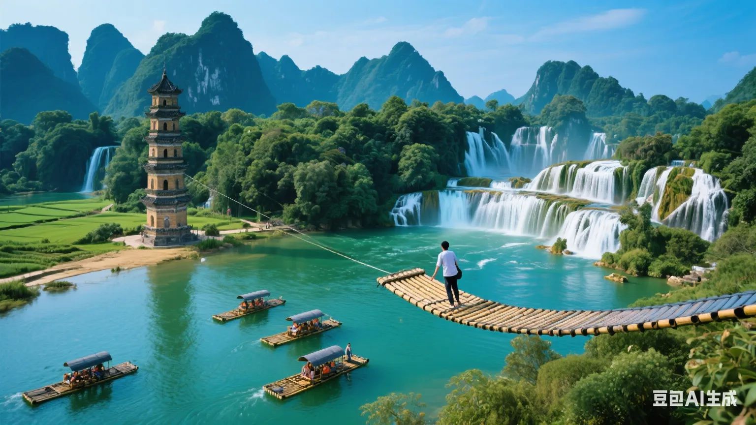 - 德天跨国瀑布乘“魔毯”俯瞰,明仕田园竹筏画中游,左江斜塔探秘千年历史。
