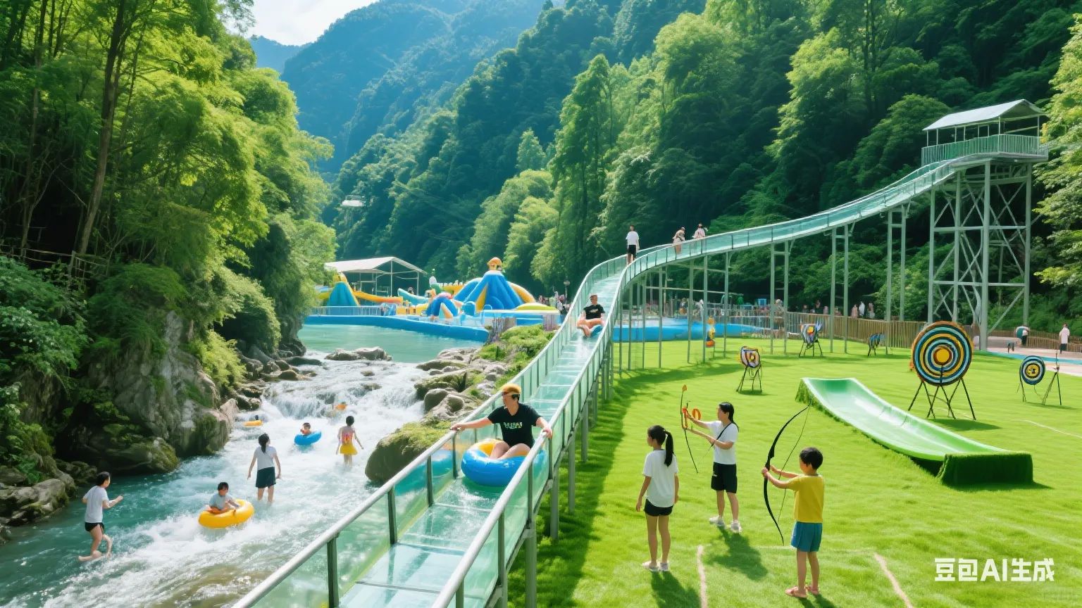 - 森林覆盖率95%,碧潭幽谷水上乐园可玩溯溪、玻璃滑道;药池坝亲子区提供滑草、射箭。