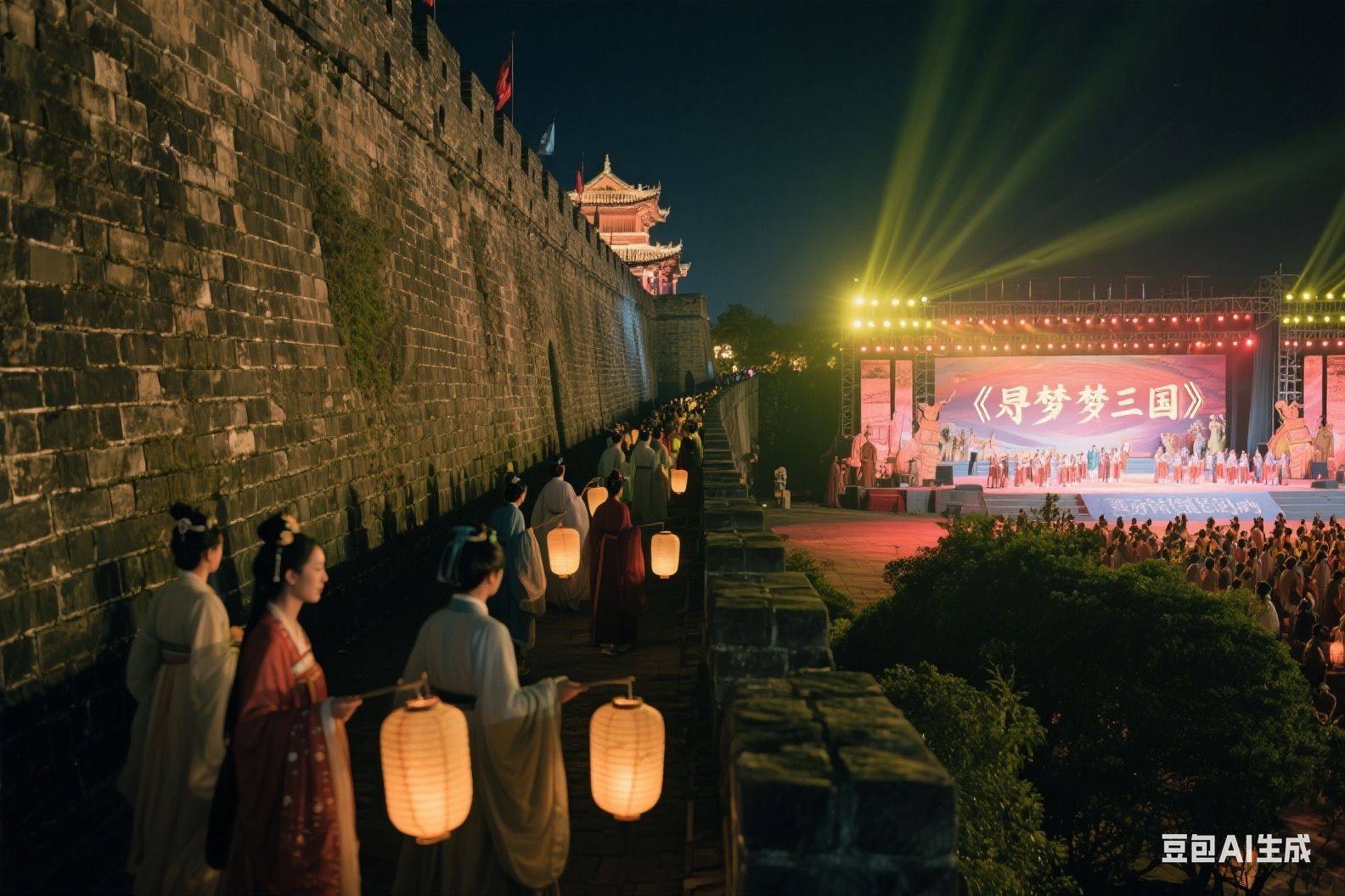 襄阳古城墙夜游:穿汉服提灯漫步,沉浸式《寻梦三国》实景演出