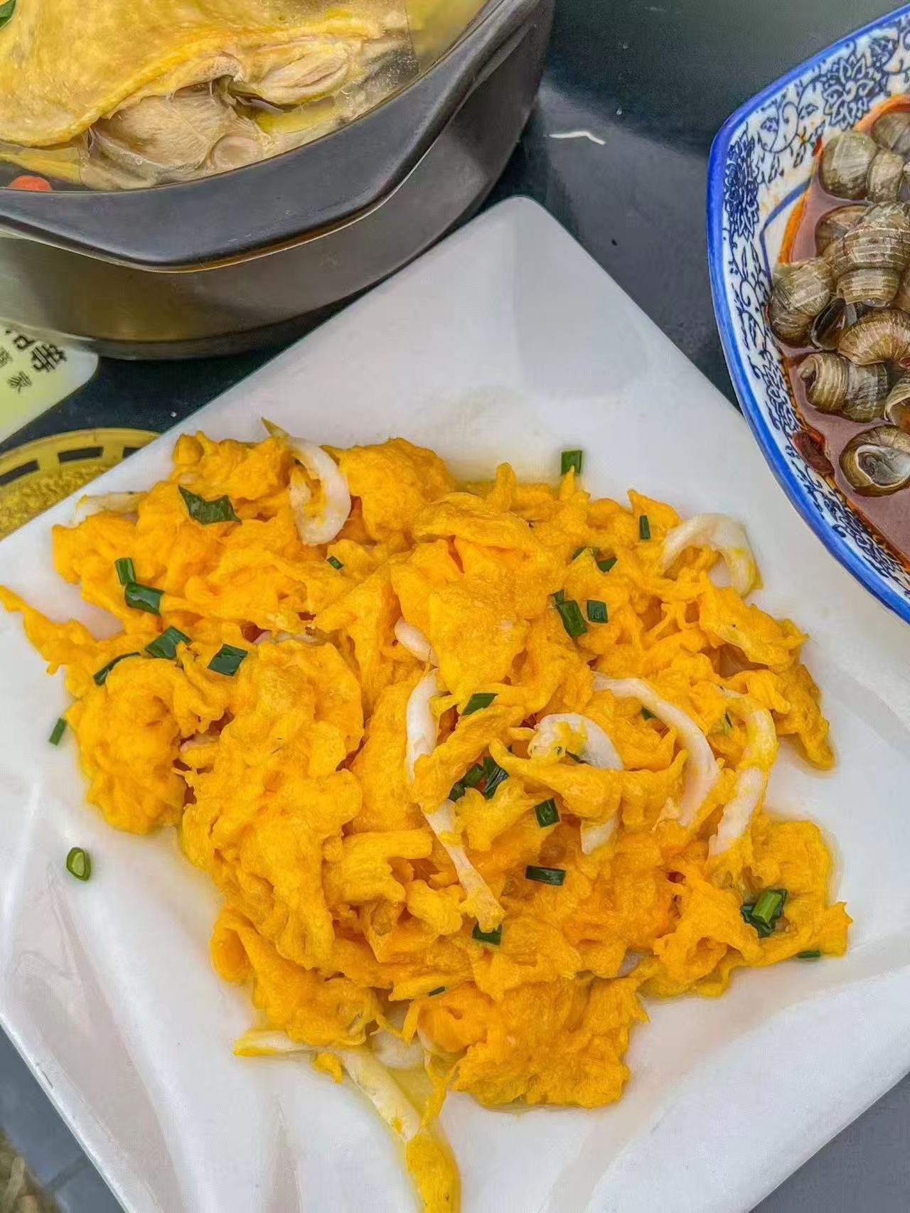 · 银鱼炒蛋取太湖的大规格银鱼,蛋液里裹着银鱼如碎银闪烁