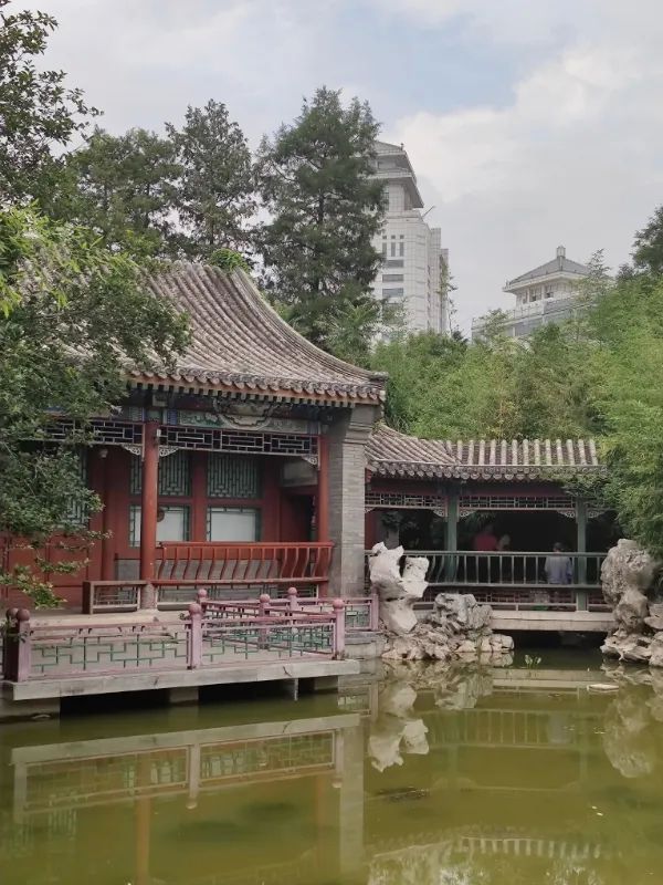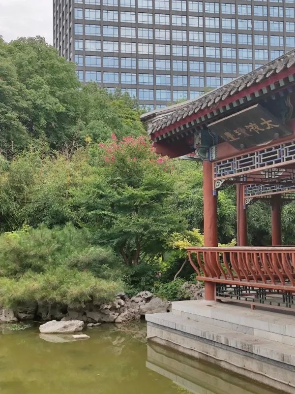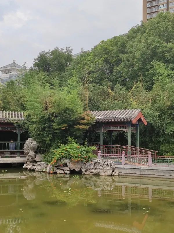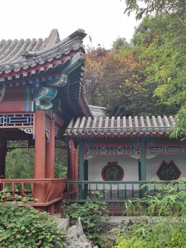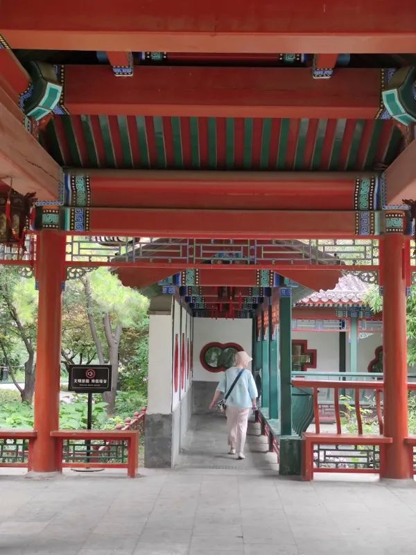 踏入公园,仿佛穿越了时空,外界的纷扰瞬间被隔绝。园内绿树成荫,繁茂的枝叶交织成一片绿色的天幕,为游客遮挡住夏日的骄阳。沿着蜿蜒的小径前行,古色古香的建筑错落有致地分布在各处。红墙黛瓦,飞檐斗拱,每一处细节都彰显着中国传统建筑的精妙与典雅。