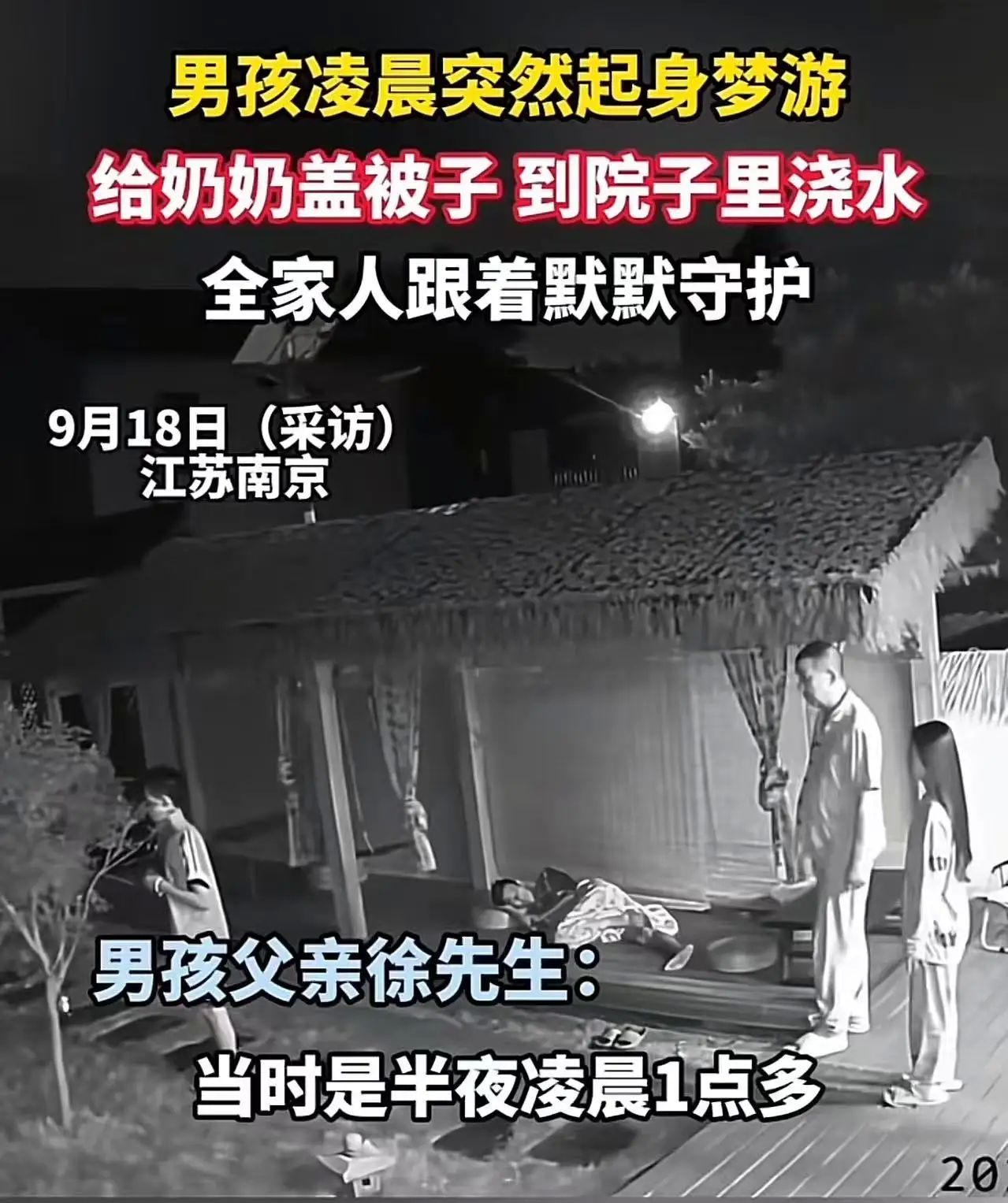 江苏南京男孩凌晨突然梦游,跑倒奶奶房间给奶奶盖被子,随后一番举动,让全家震惊!