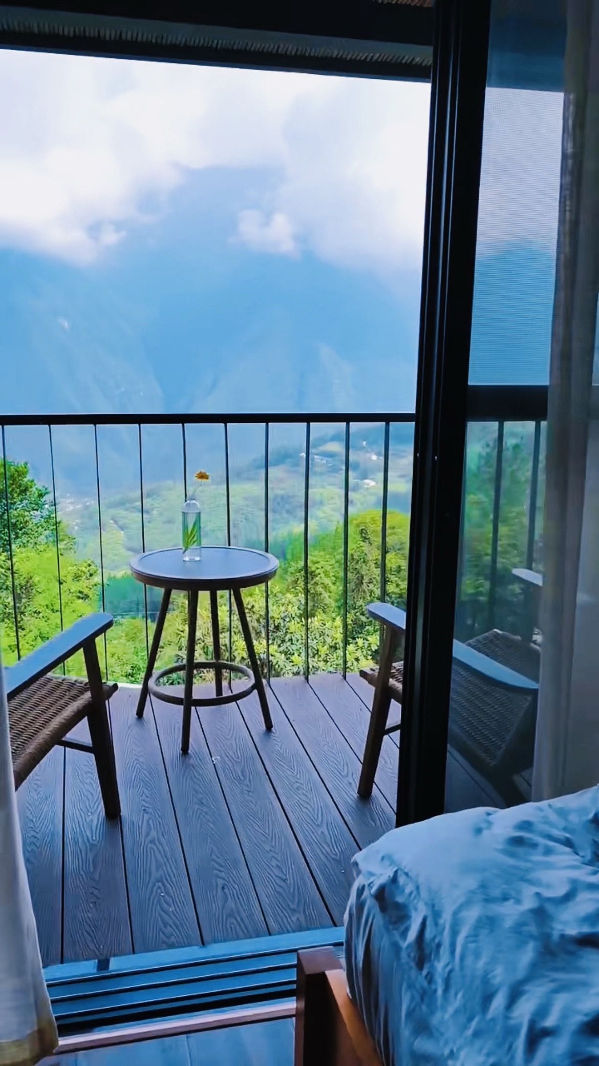 风景很美,个人建议挑个雨天去,山里下雨之后真的比晴天更美,民宿的阳台和观景台上都正对山景,雨后特别治愈。