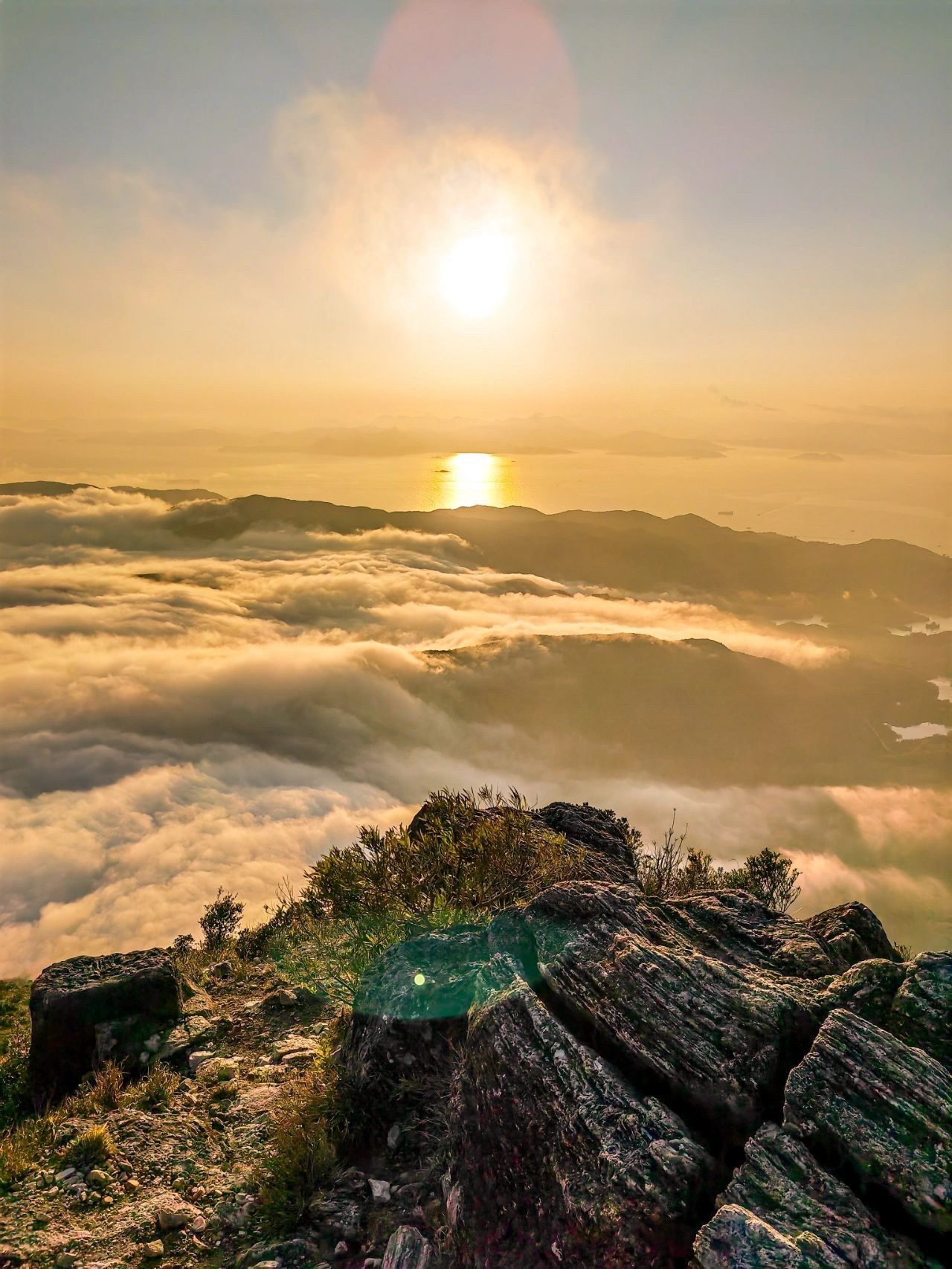 天气好的时候能偶遇云海,云雾涌起时,使人仿佛置身于仙境之中,还可以远眺山海径、杨梅坑、东西冲、大亚湾等海景。