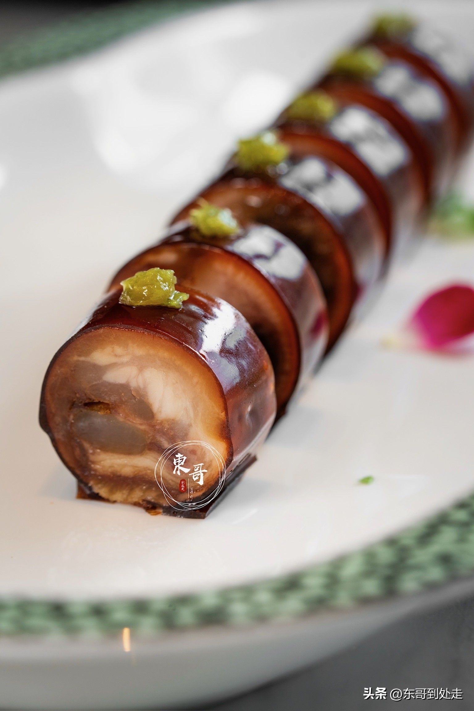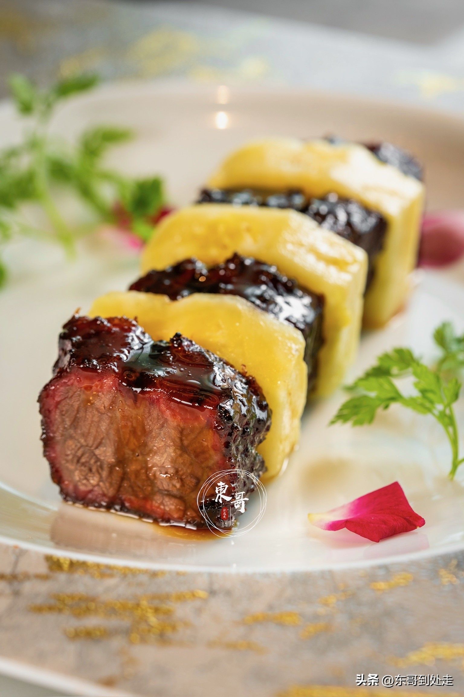 金酱蒸凤爪,将粤式茶楼的经典再度升级。凤爪被金酱层层包裹,蒸至酥软脱骨,酱色浓郁诱人。酱料的咸香与凤爪的软糯完美交融,骨头轻松脱落,正是记忆中粤味的温暖回归。蜜汁爆烧雪花牛肉叉烧,把牛肉的鲜嫩与叉烧的甜香相融合。雪花牛肉纹理美妙,经蜜汁炙烤,外皮微焦带甜,内里鲜嫩多汁,叉烧的独特风味沁入牛肉肌理,每一口都是鲜甜香嫩的绝美演绎。