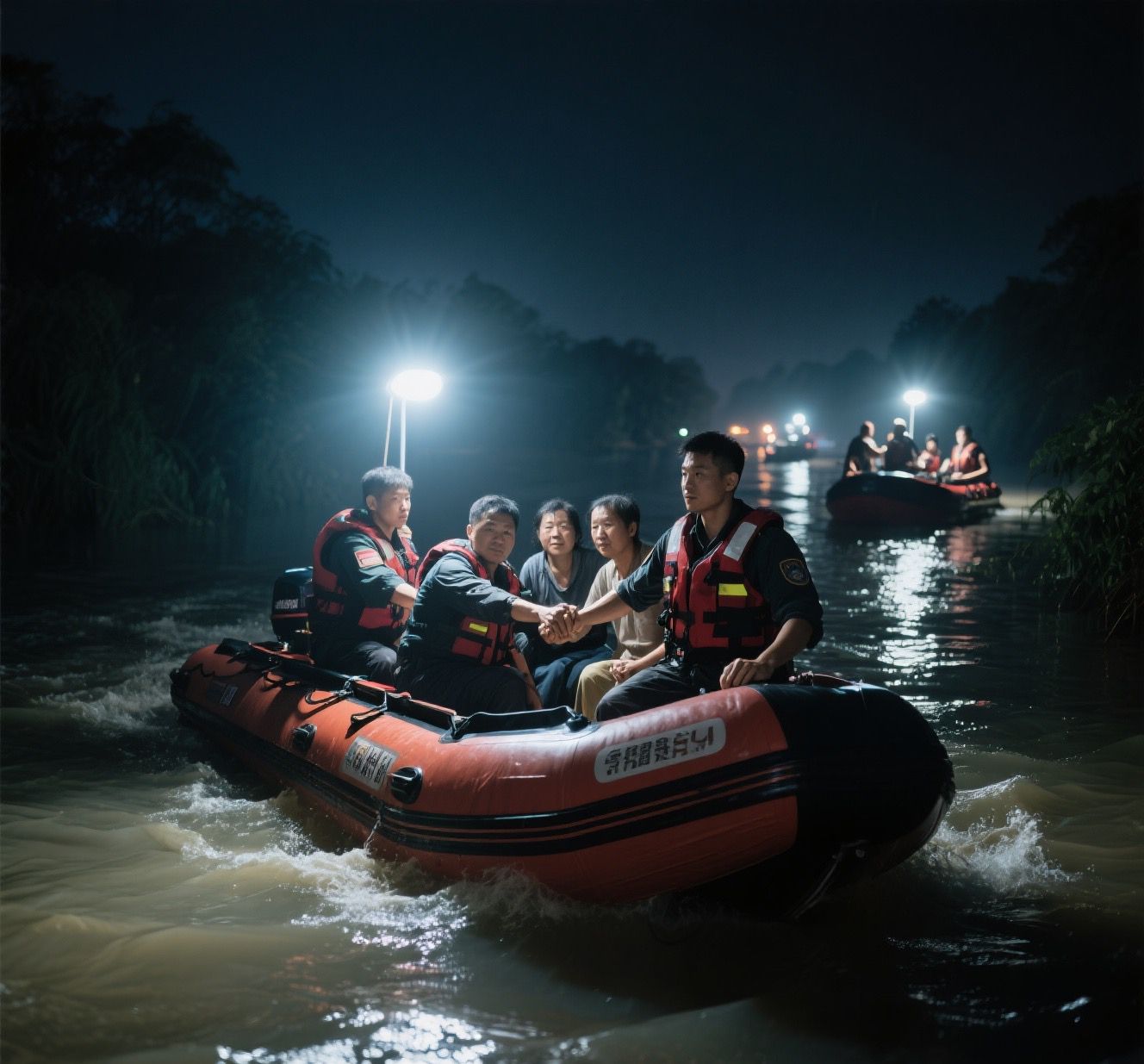 3.逆行救援:特警冲锋舟破浪转移百人