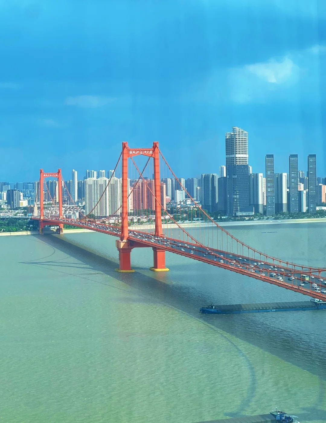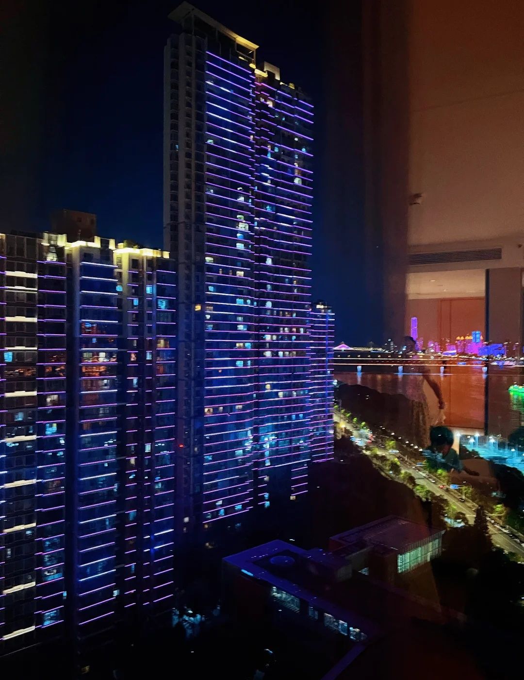 一进房间,就被江景惊艳,小朋友很兴奋,船只在江里往来,脚下是鹦鹉洲大桥,远处是武汉长江大桥和黄鹤楼,夜景也是绝了小朋友们很喜欢