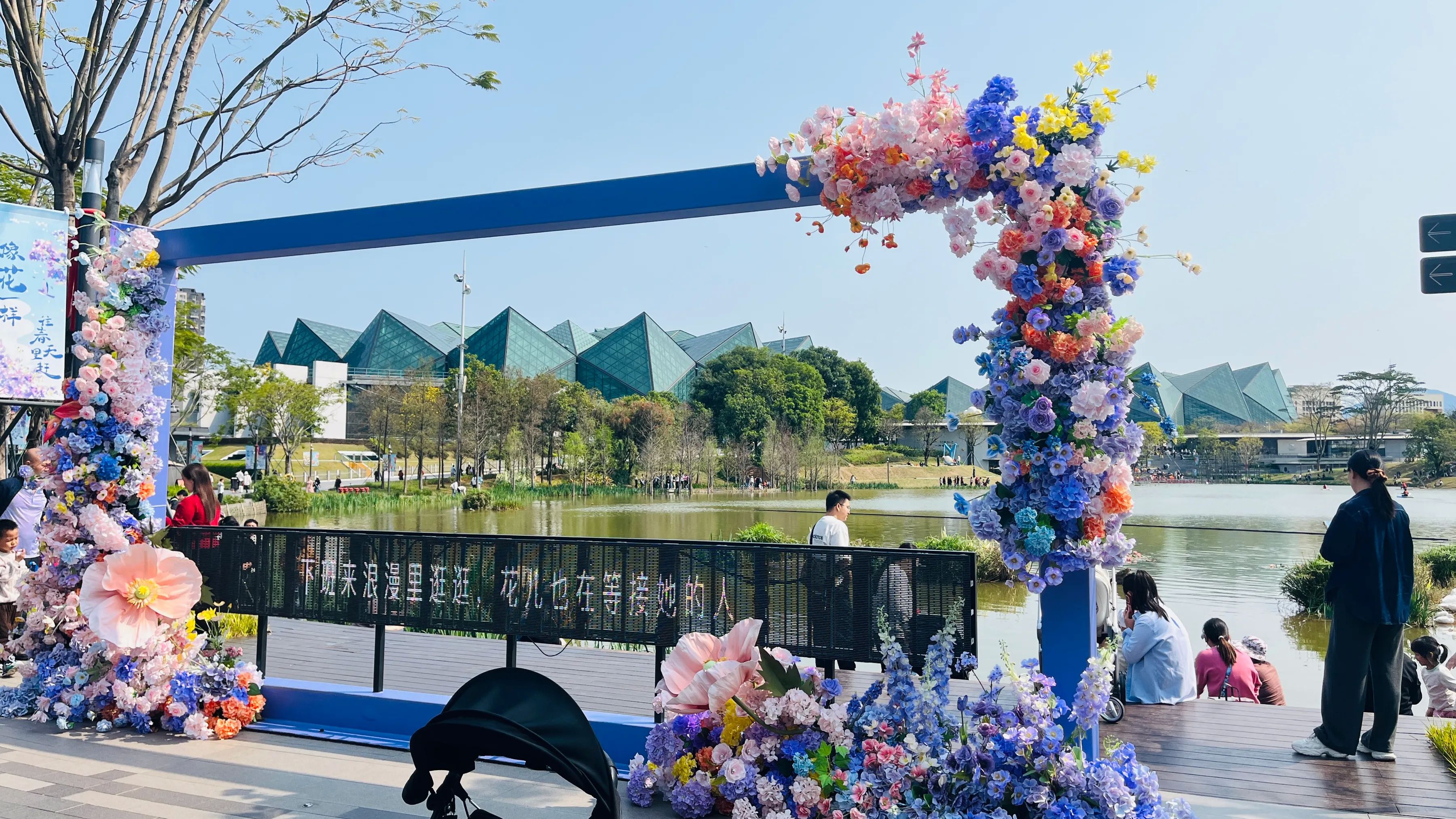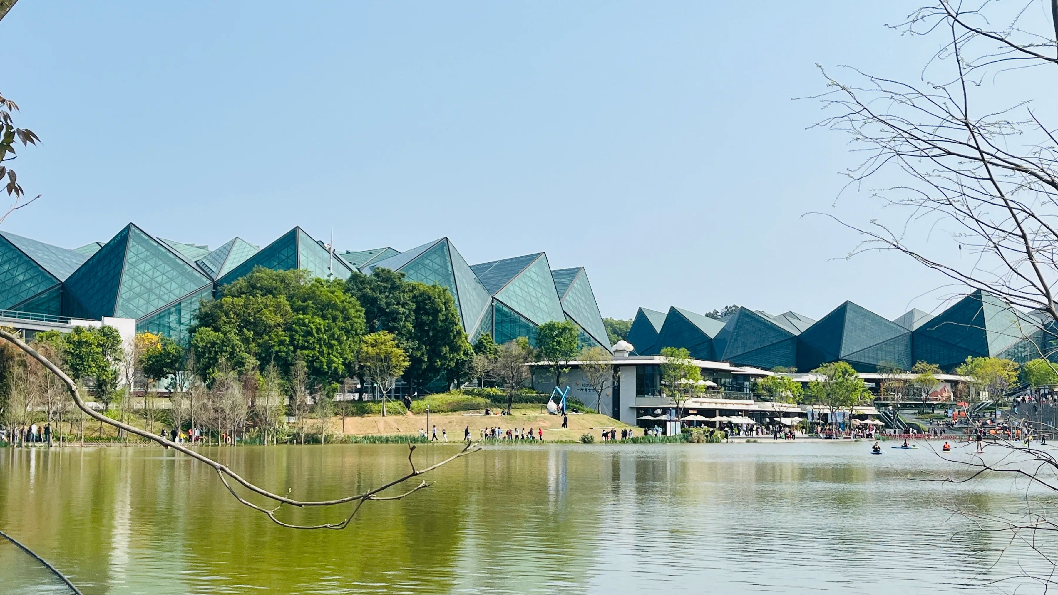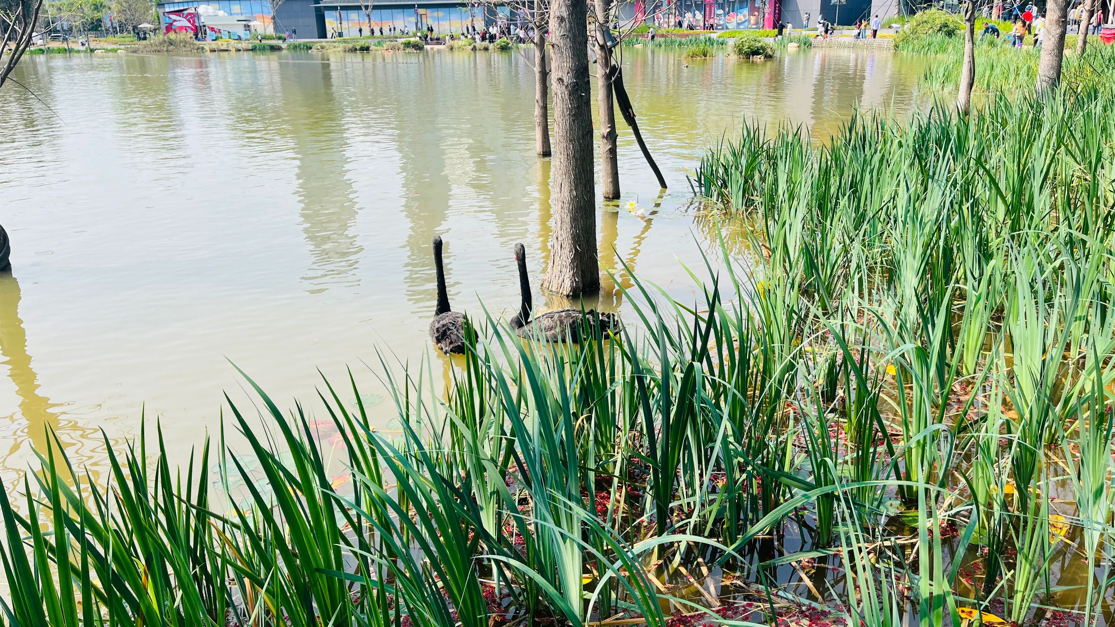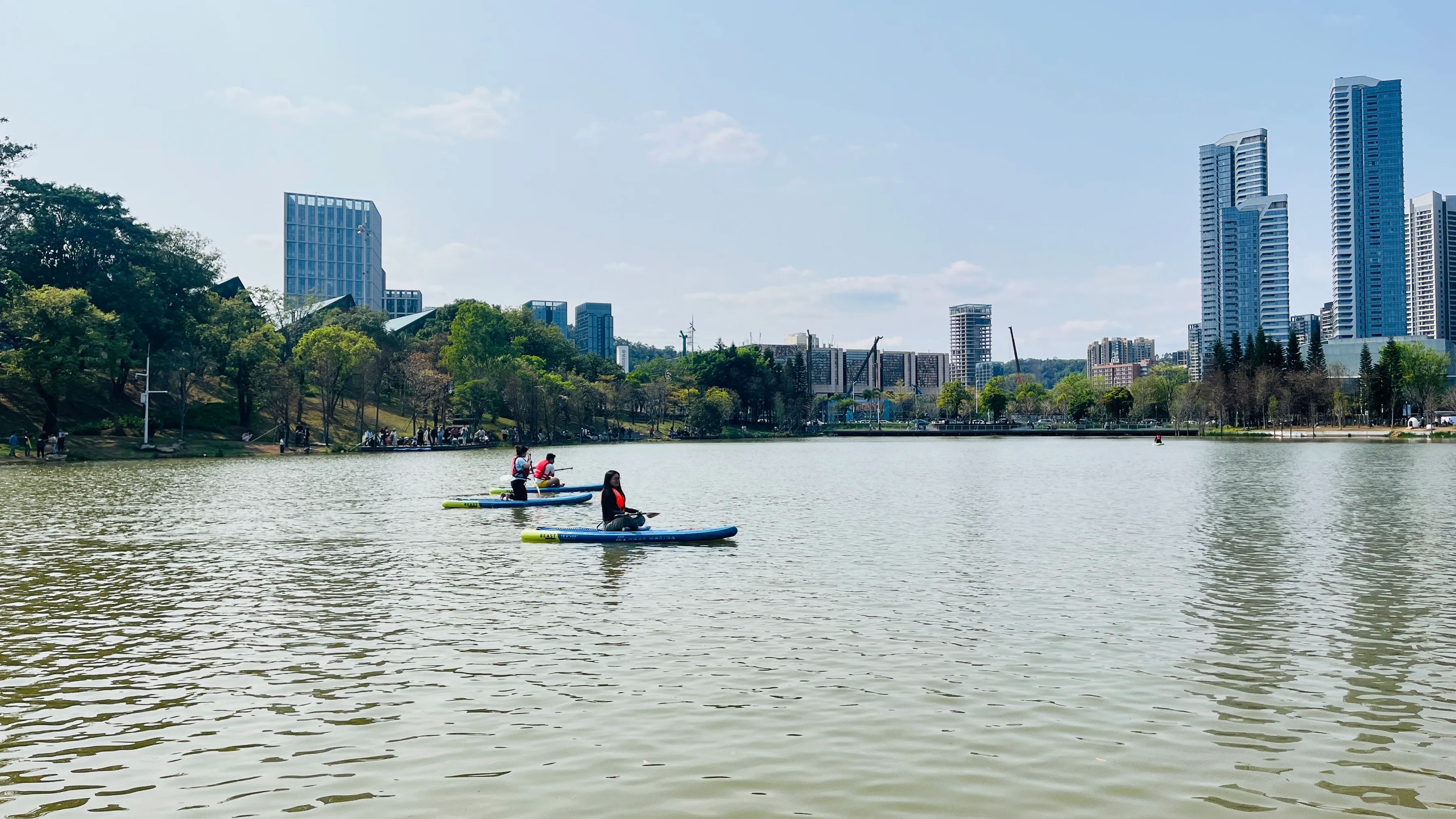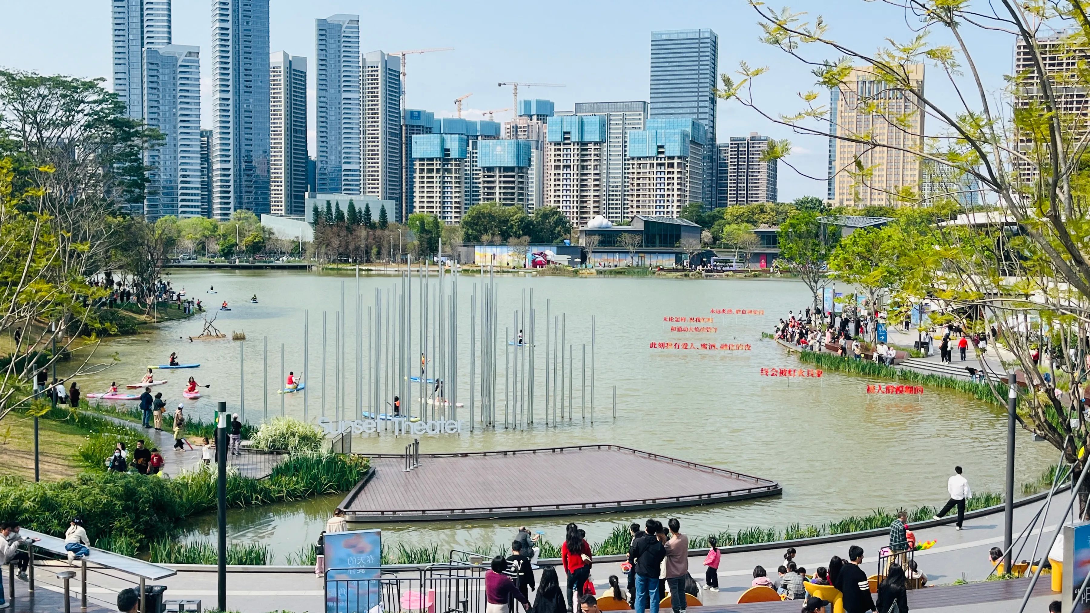 从主场馆出来,我们来到紧邻的大运公园,公园内绿树成荫,湖水清澈,湖中有划艇爱好者用自己喜欢的姿势在湖上自由自在的划行,享受美景和内心的宁静。我们沿着湖边的小路漫步,欣赏着美景,只见很多年轻人慕名在公园里似乎为她们设计的打卡景点,着装拍照留念,公园好一派热闹欢乐的景象。