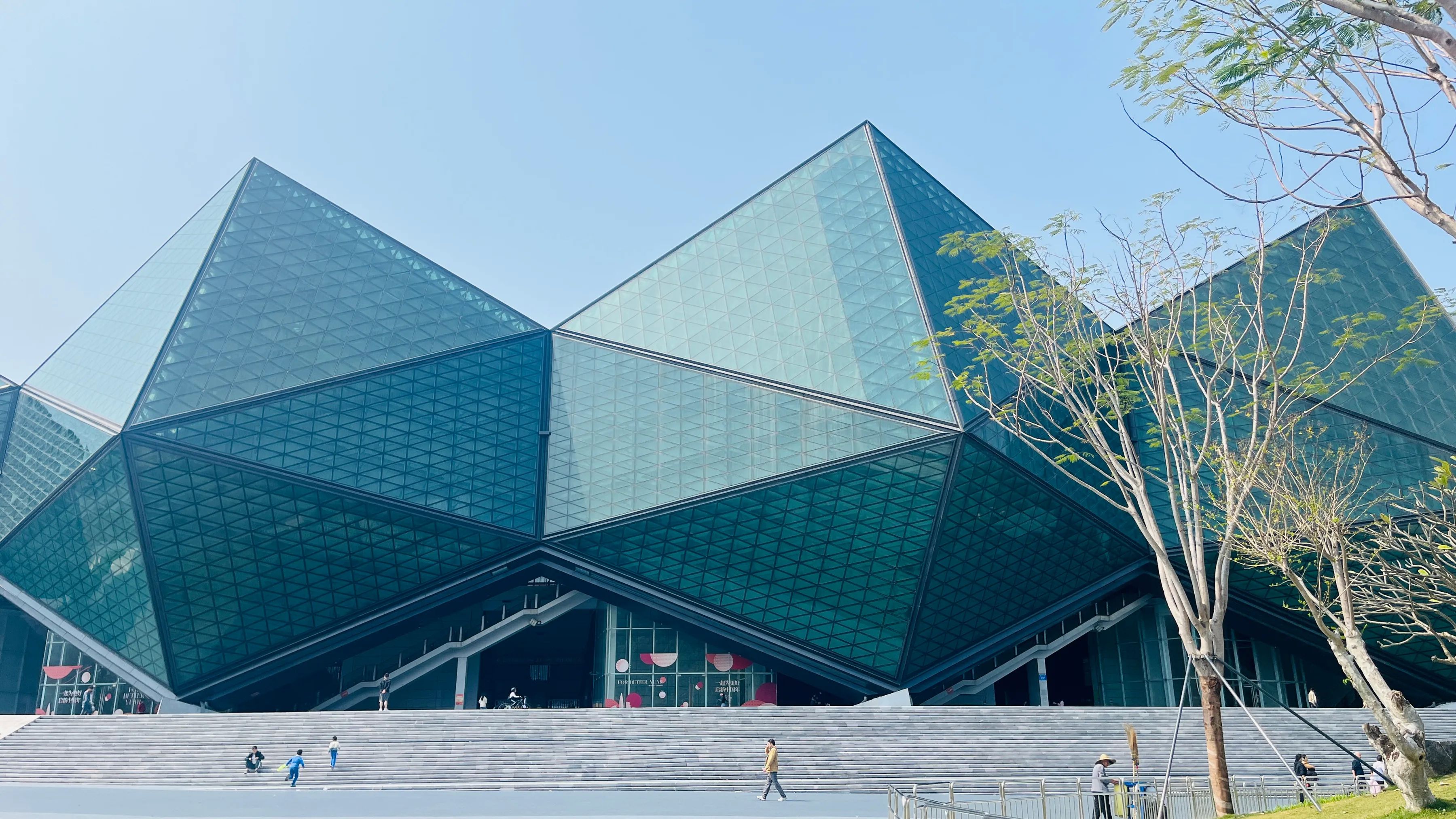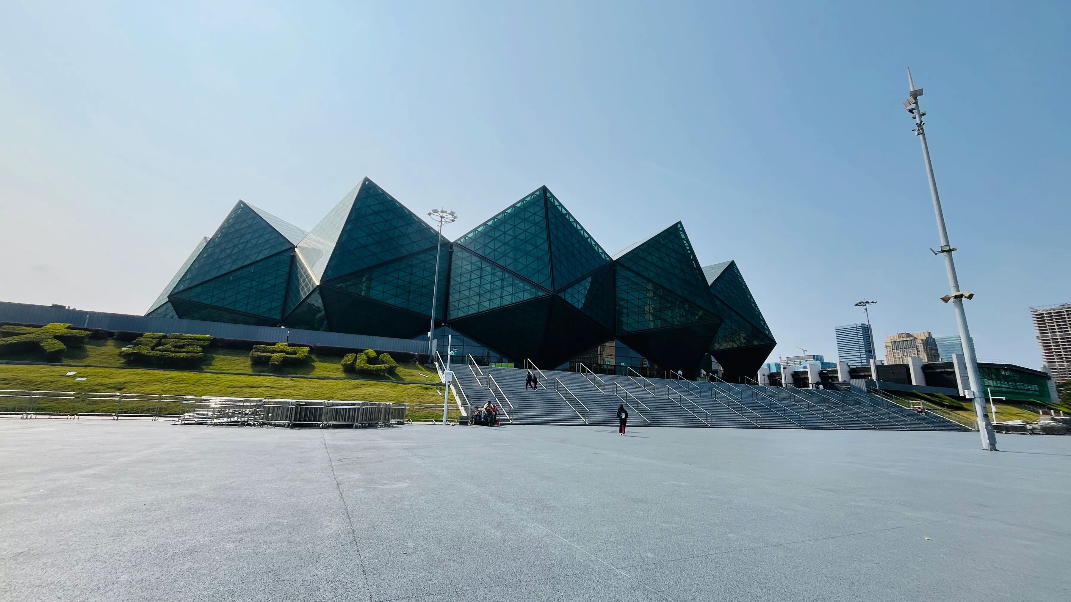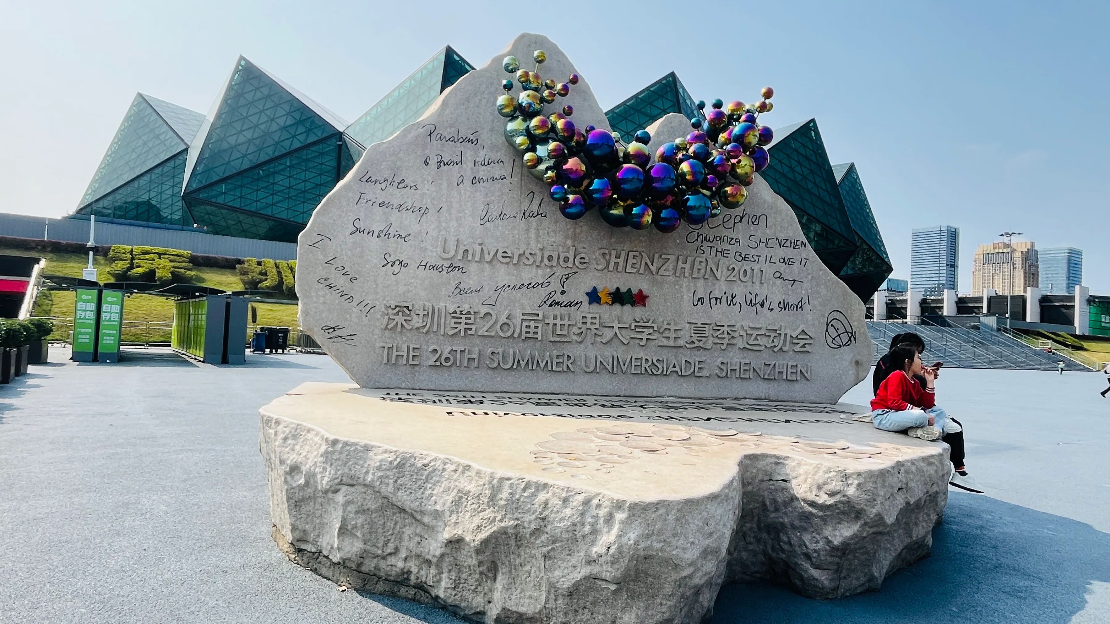 周日我和我那位乘地铁又换公交决定先去大运天地转转,之后再前往横岗眼镜城。从大运站下来,没走多远,就看见了体育场独特的建筑轮廓,像一颗巨大的“水晶石”,在阳光下熠熠生辉,充满了现代感和科技感。这座现代化的体育场可容纳约六万名观众,是2011年世界大学生运动会的主场馆。