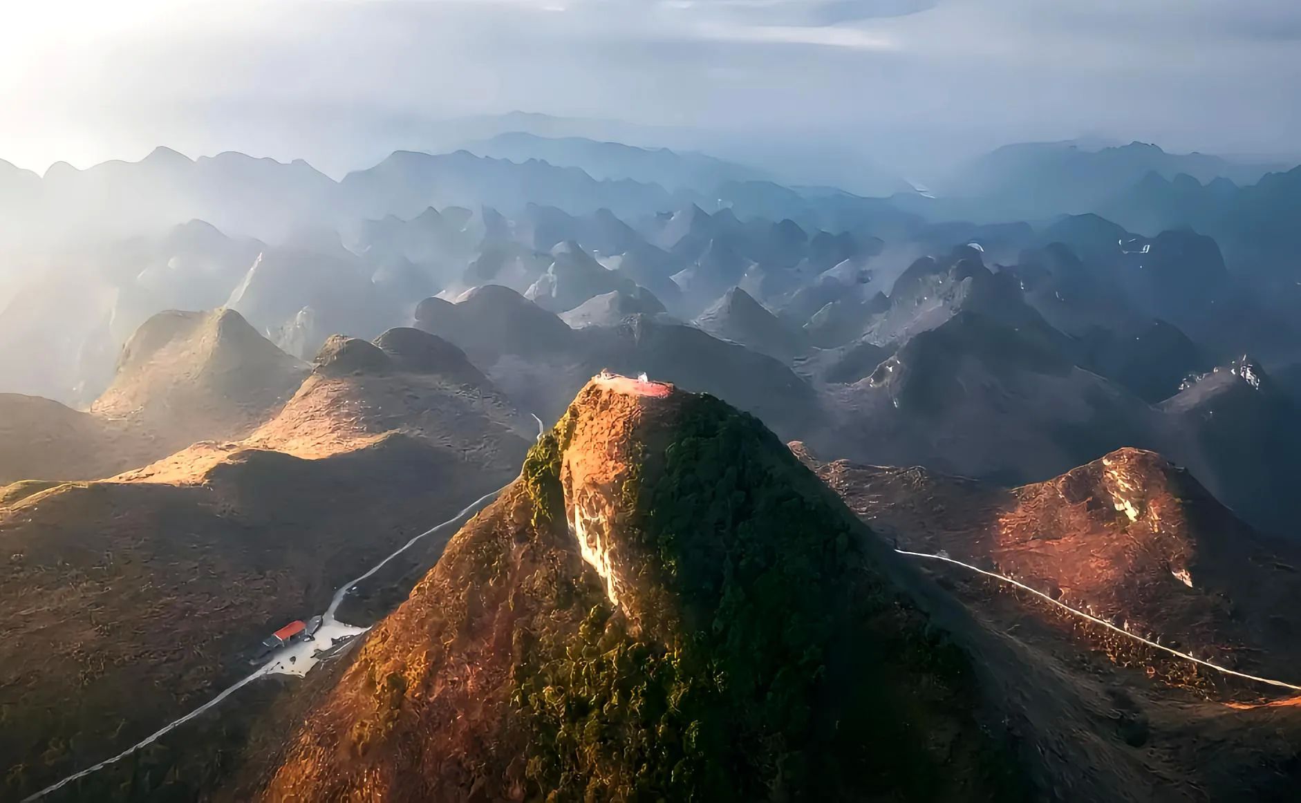 · 第一站导航清远阳山静雾山。登高望远,看万山朝拜的喀斯特峰群,一座座山峰直插云霄,站在山顶一览众山小。