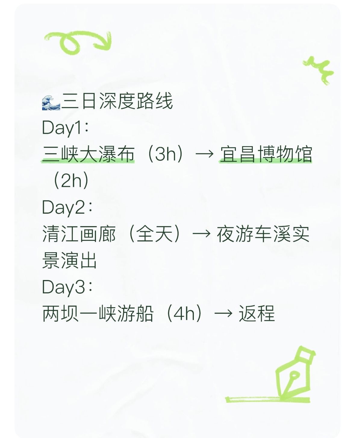 三峡大瀑布(游玩3小时) 宜昌博物馆(2小时)。