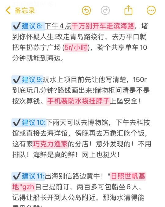 建议8: 下午4点千万别开车走滨海路,堵到你怀疑人生!改走青岛路绕行,去万平口就把车扔苏宁广场(5r/小时),骑个共享单车10分钟就能到海边。