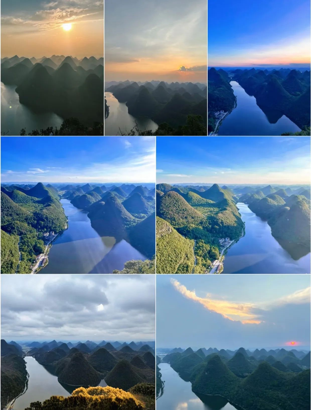 登顶西秀区万峰顶时,正值日落。喀斯特峰林在金光中连绵起伏,宛如活化的《千里江山图》。建议下午4点前抵达,等待日落镀金峰的震撼时刻。