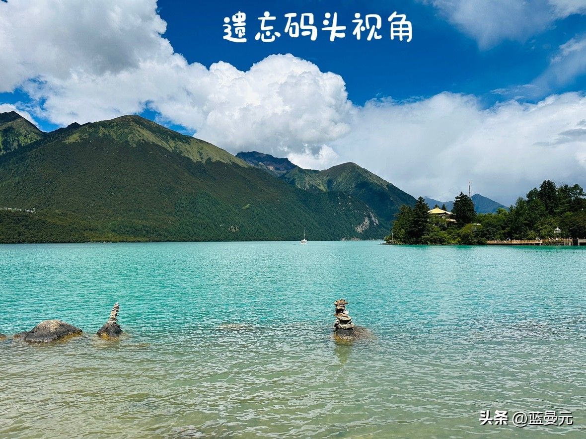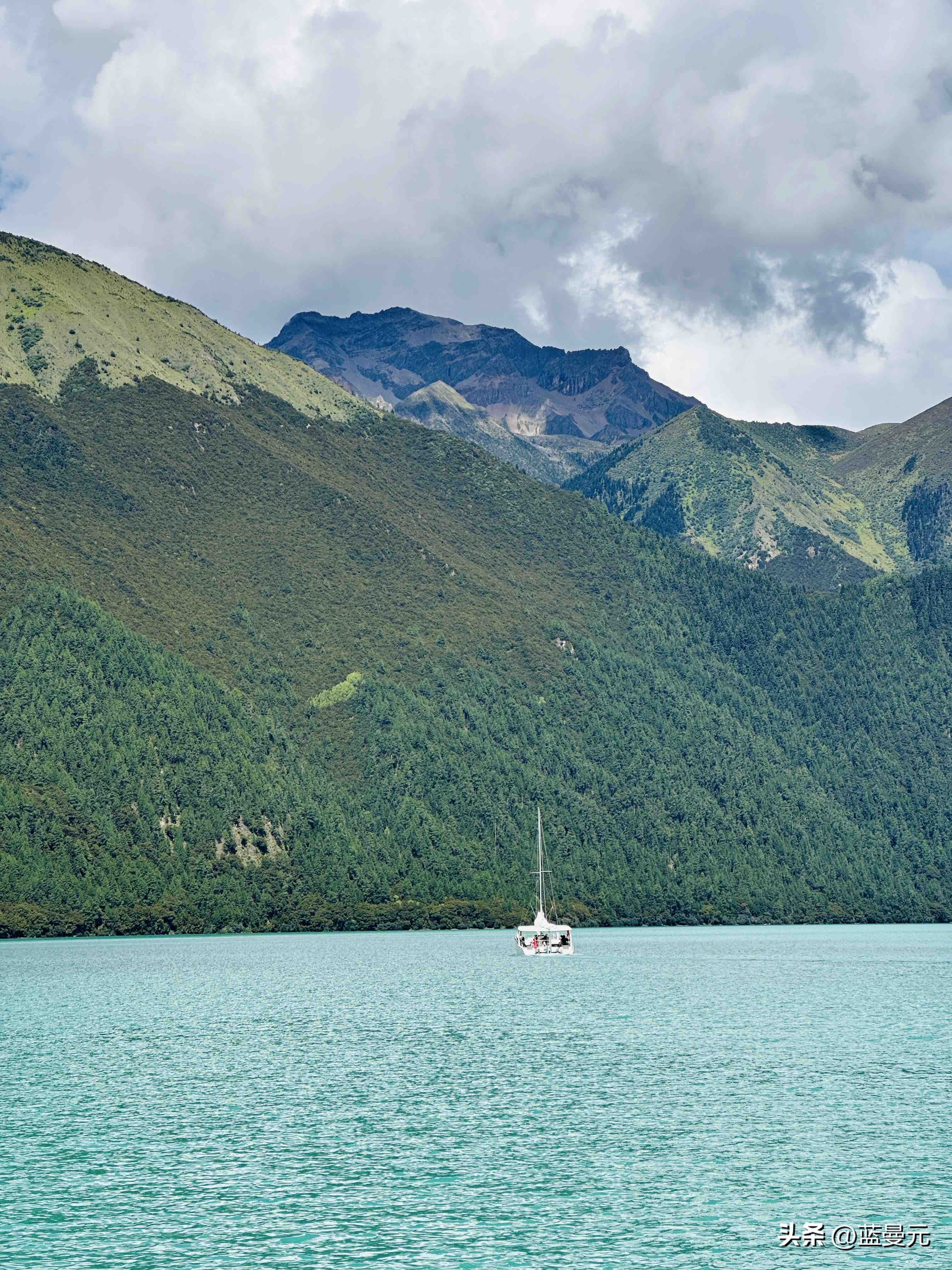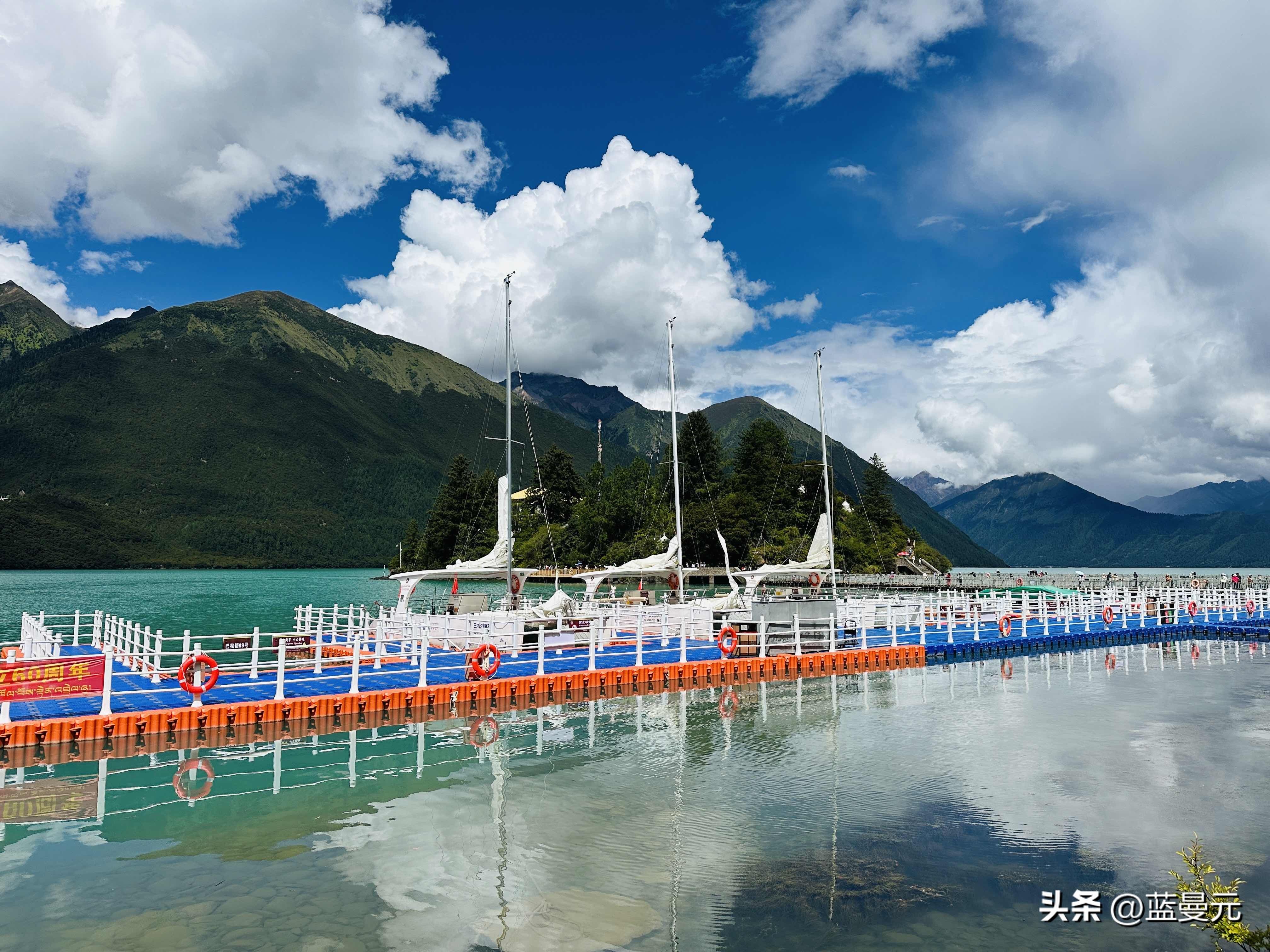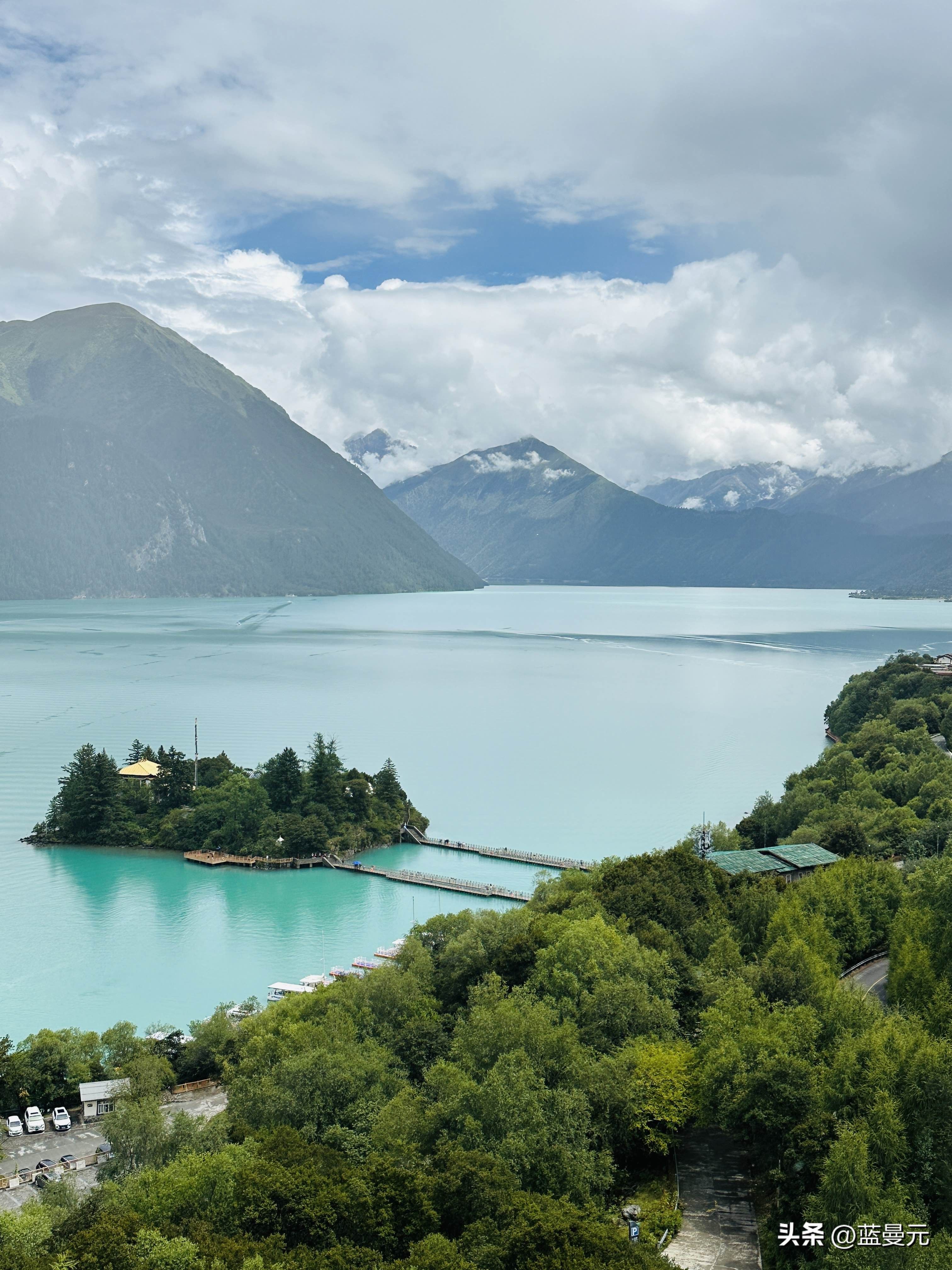 蓝天白云下,一湖碧水,如翡翠般,真是人间胜景,毫不逊色喀纳斯湖,怪不得被称为藏地绿宝石。