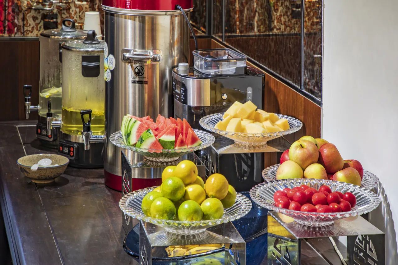 早餐丰富多样:酒店餐厅占地面积为500平方米,可同时容纳200人自助早餐。早餐种类超多,中式西式都有,满足不同人的口味需求。坐在中式风格浓厚,高贵典雅又不失大家风范的餐厅里吃早餐,开启美好的一天,幸福感爆棚!