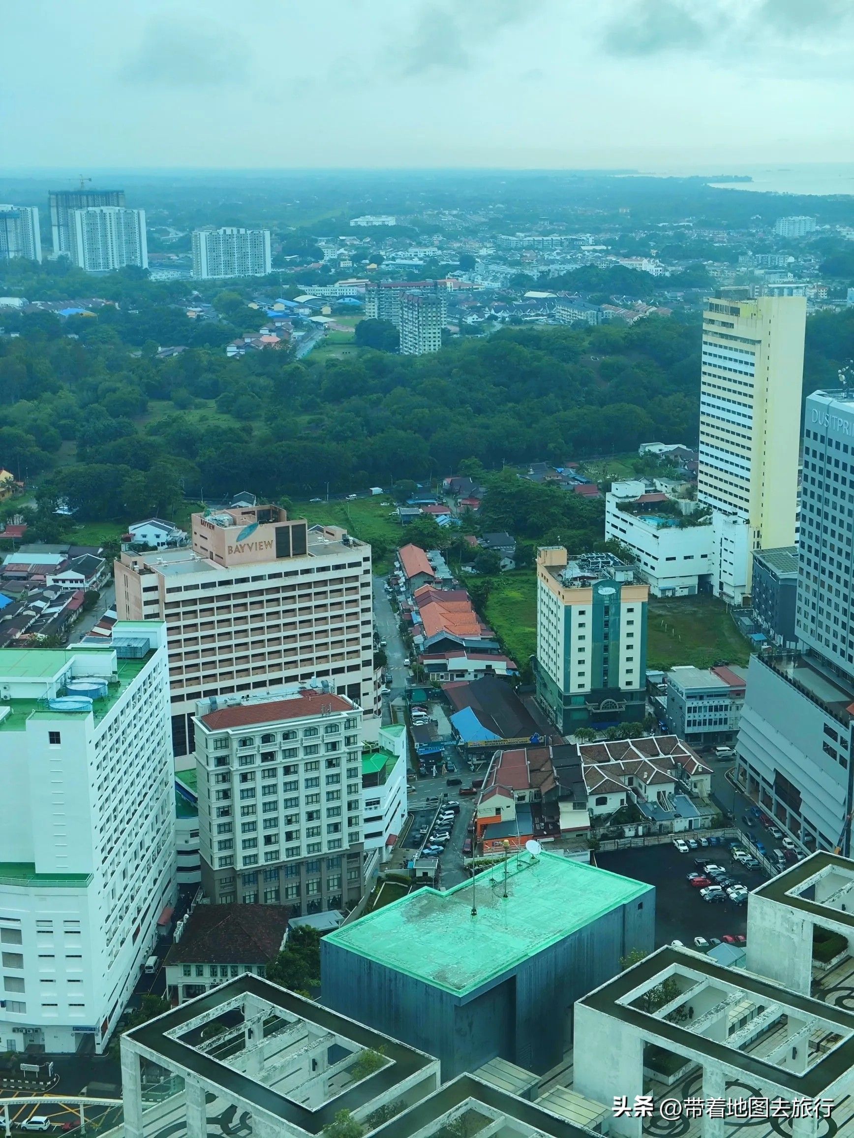 回过头来再说这个The Shore Sky Tower,这座建筑是马六甲最高楼,共43层,在43层楼顶就是整个观景平台,单独上观景平台成人票价25马币,但当我坐电梯上到41层准备转另外电梯上去时,我发现41层透过巨大的玻璃窗完全可以俯瞰窗外景色,根本没必要花那大头钱去楼顶,所以我没花一分钱就在41楼满足了俯瞰马六甲全景的愿望。这栋大楼实际是一家高档酒店,从进门到坐电梯没人管你,大摇大摆进出就可以了。
