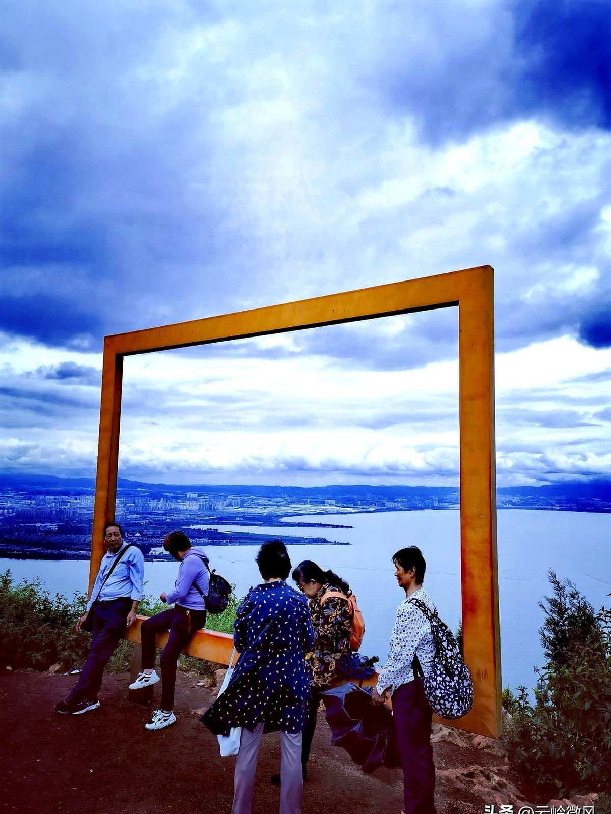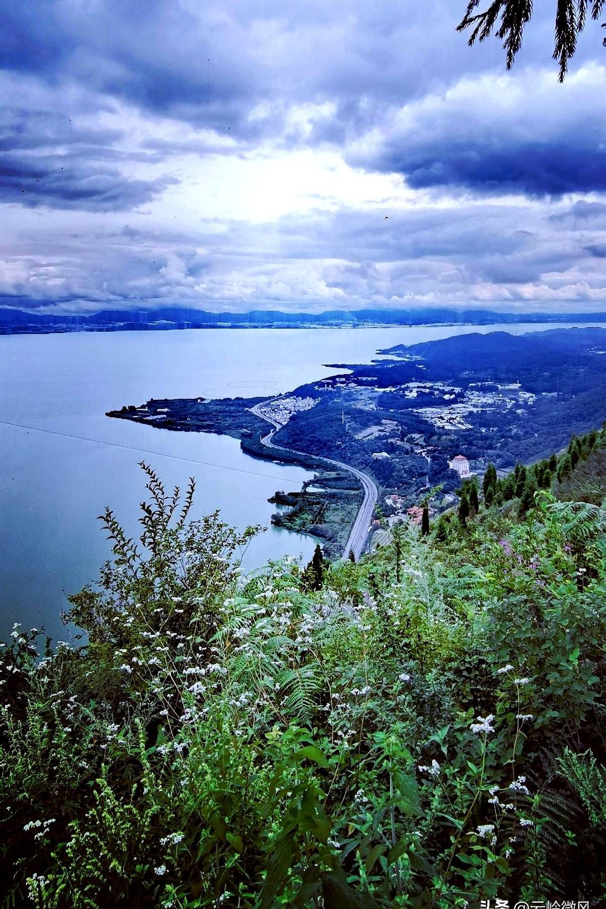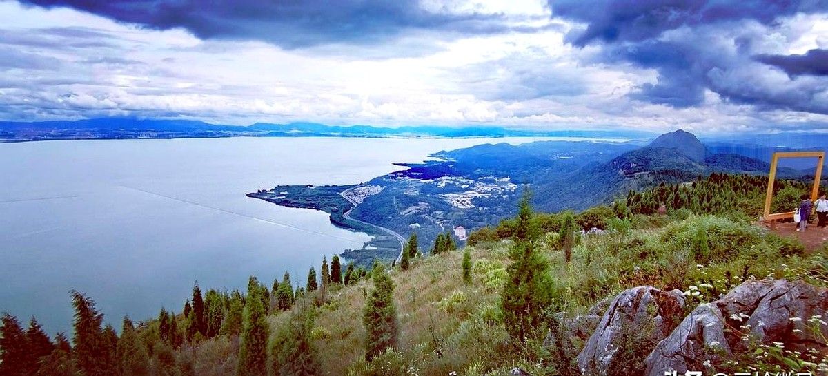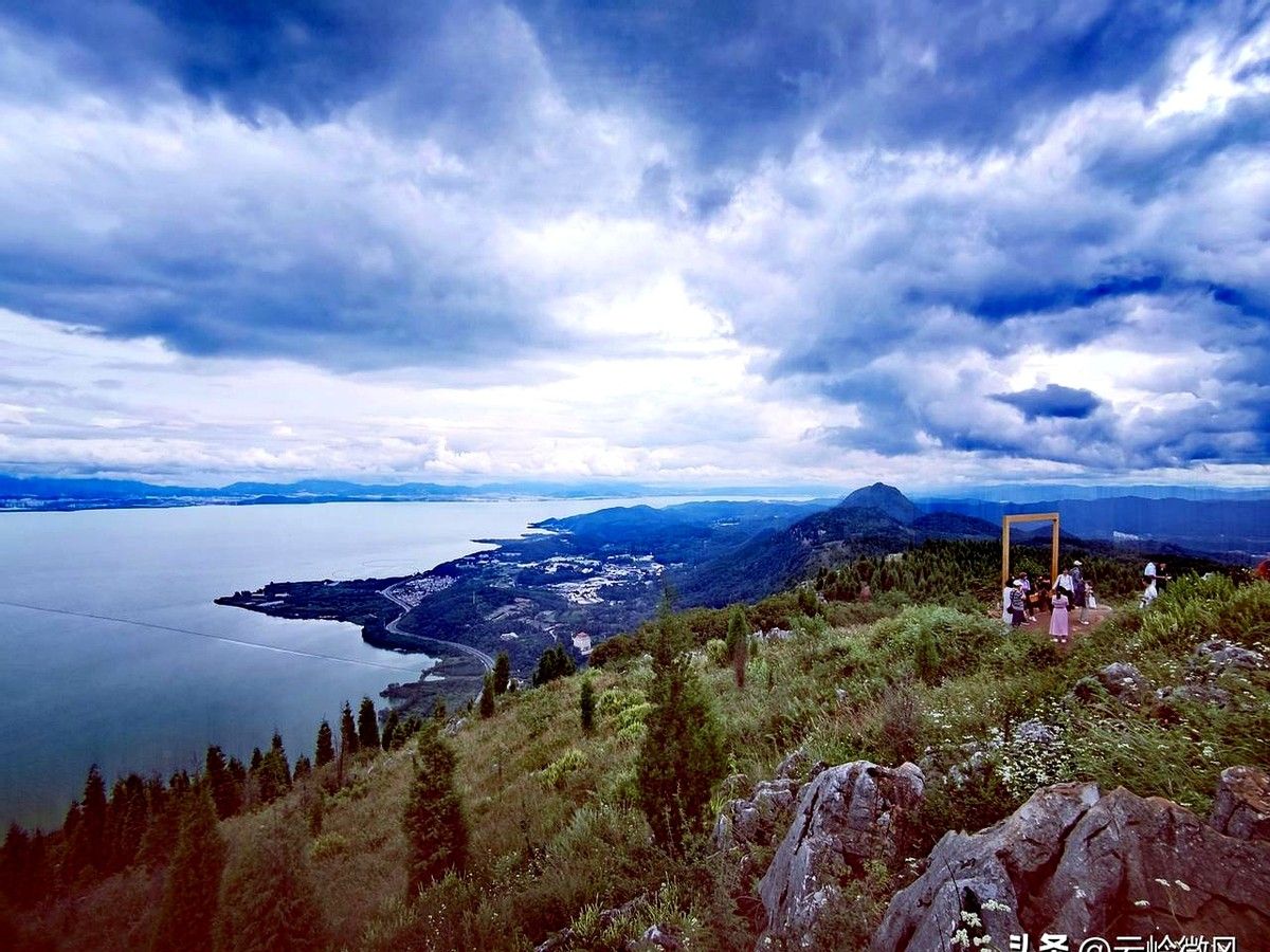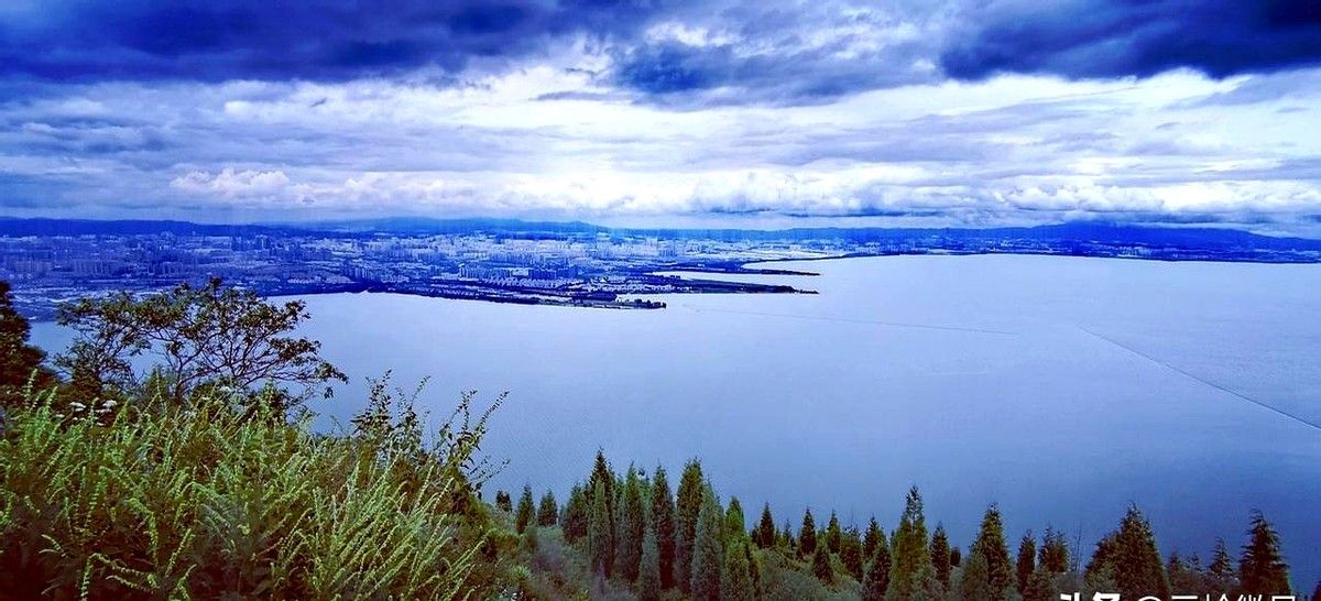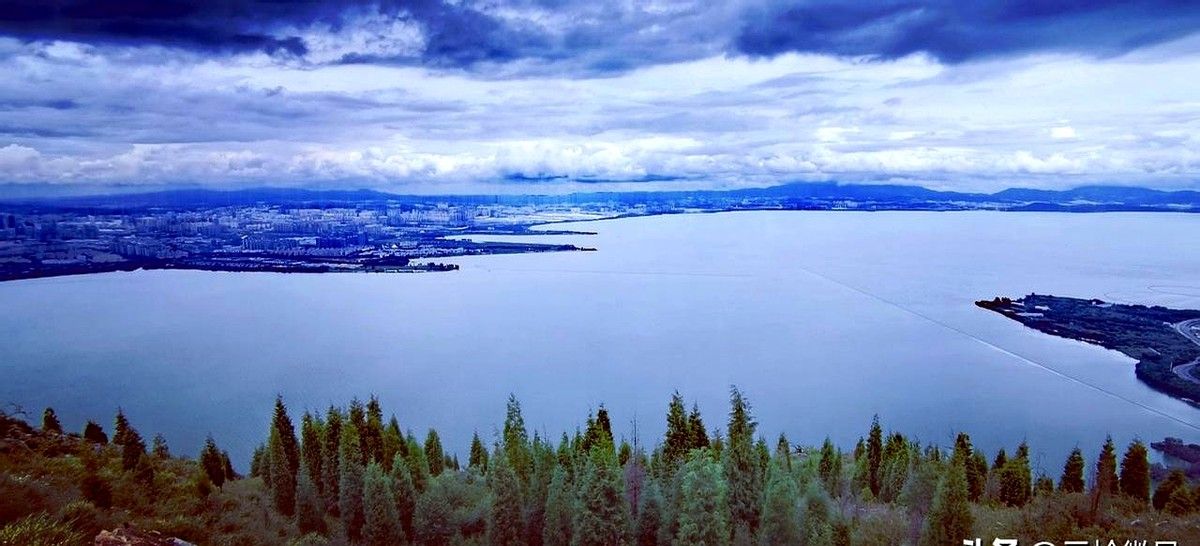 西边是安宁,灯火顺着山谷像被风拉长的丝绸;脚下滇池铺开,像谁不小心打翻的镜盒。