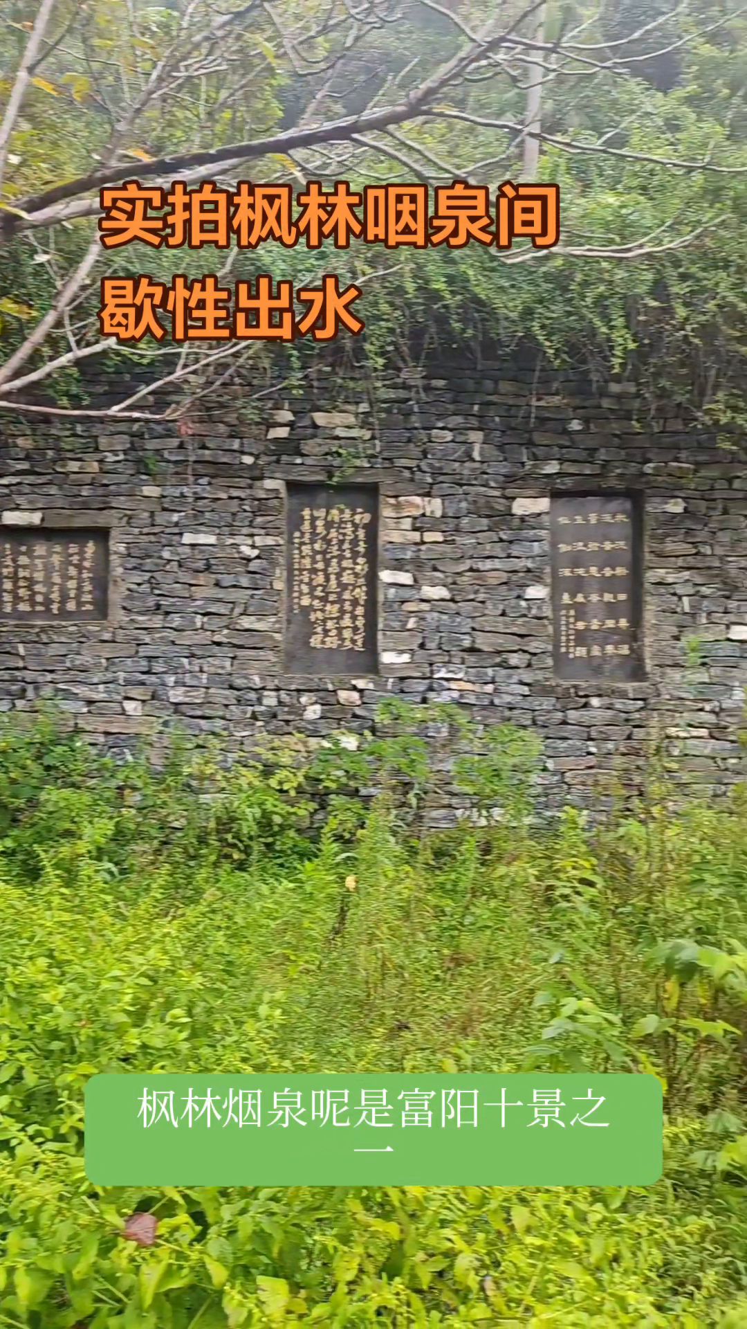 大家好,老木匠。今天下雨,在富阳的三溪村又来到了枫林咽泉。枫林咽泉是富阳十景之一,相传乾隆皇帝曾经到此一游,当时他口渴,用泉水解渴,结果呛去了咽,从那以后泉水就叫枫林咽泉。据说乾隆皇帝用宝剑在石头上刻下了四个字:竭水灵官,还保存至今。