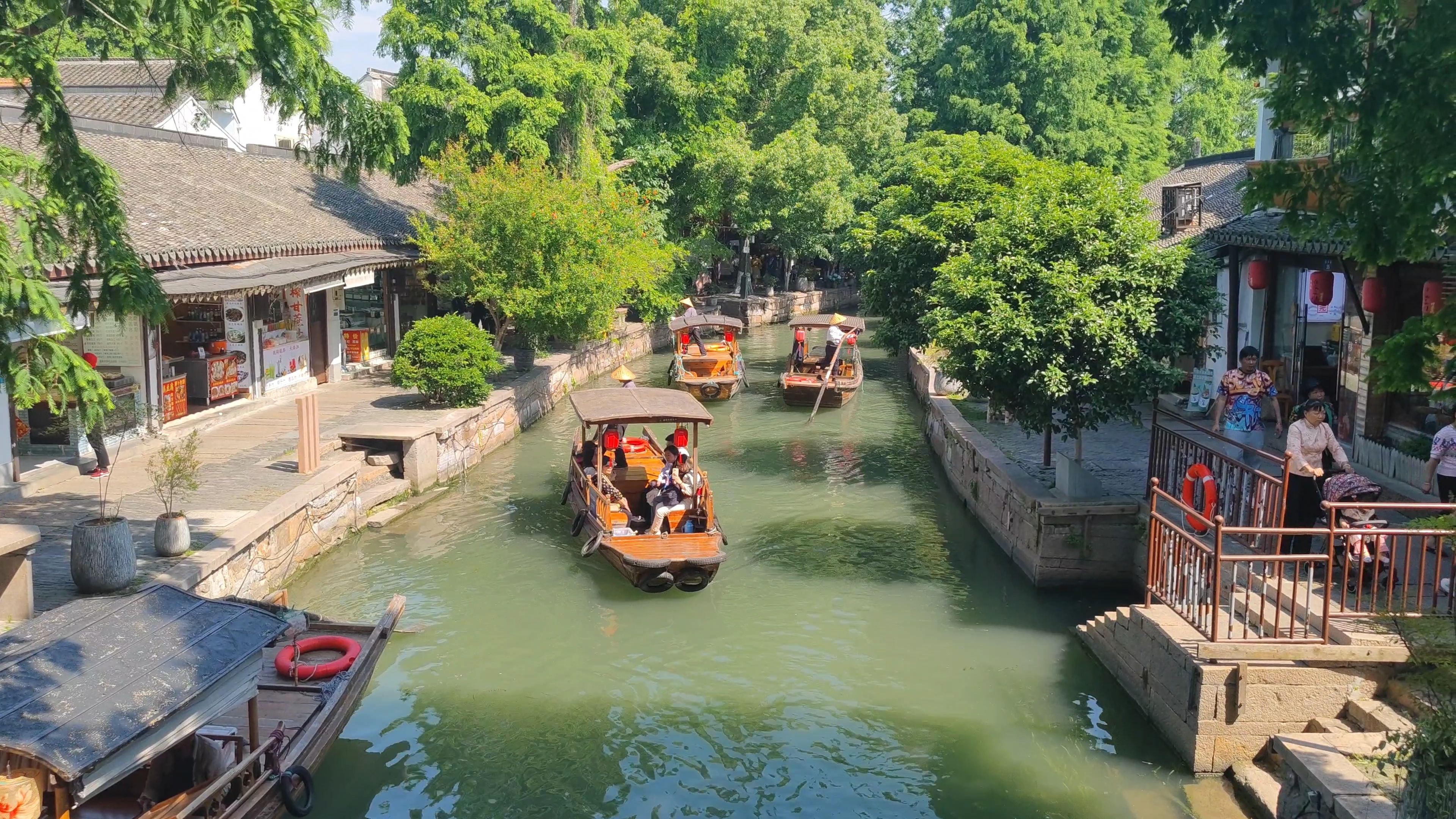 朱家角的水巷纵横交错,像一幅铺开的水墨画。沿河而建的民居保留了明清时期的建筑风格,飞檐翘角间透着江南独有的灵动。坐在河边的茶馆里,看乌篷船缓缓划过,听船娘的吴侬软语在水面荡漾,时间似乎也放慢了脚步。