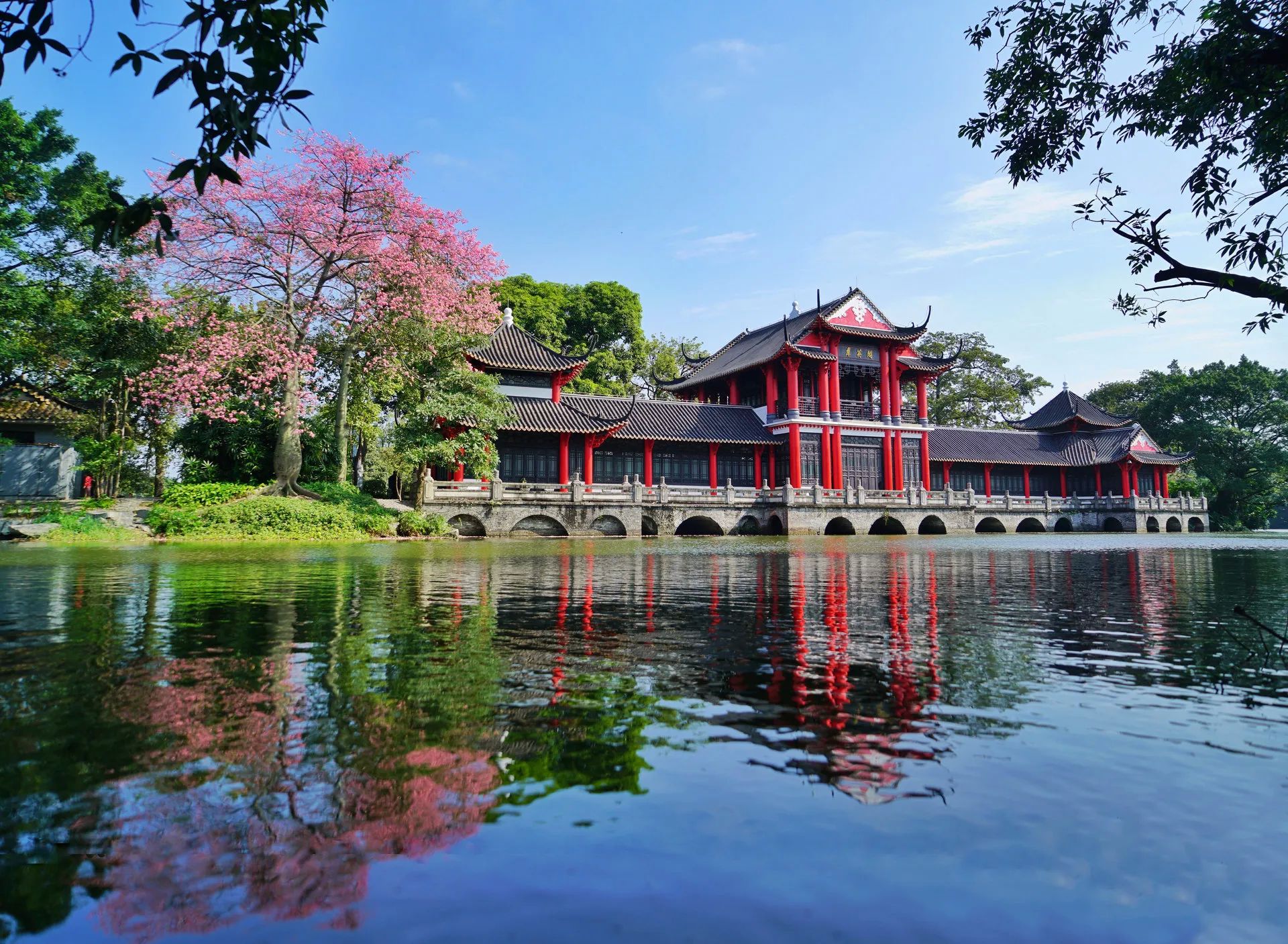- **特色**:国家5A级景区,以巨型牌坊和古典园林著称。秋季粉色的美丽异木棉花海营造浪漫氛围,适合汉服摄影;园内还有湿地、古塔等自然与人文景观。