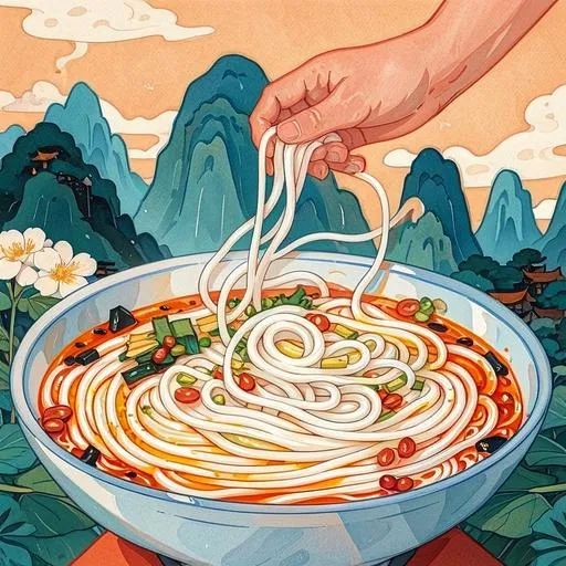 桂林米粉,以其独特的口感成为标志性美食。制作桂林米粉的工艺十分讲究。首先,选用优质的大米进行充分浸泡,让米粒吸饱水分。然后,将浸泡好的大米磨成细腻的米浆,这一步需要恰到好处的研磨力度和时间,以保证米浆的细腻程度和均匀性。接下来,把米浆均匀地铺在特制的蒸笼上,用旺火蒸熟,形成薄而有韧性的粉皮。蒸熟的粉皮取出后,放置在案板上,用刀切成细条状,这便是我们熟悉的米粉。而那鲜香的卤水更是灵魂所在,通常是用多种香料、猪骨、牛骨等食材长时间熬制而成,香气浓郁,味道醇厚。再配上炸得酥脆的黄豆、香嫩的卤肉、酸爽的豆角等丰富配菜,每一口都充满家乡的味道。方便携带的干米粉,让在外的游子能随时品尝到家乡的风味。