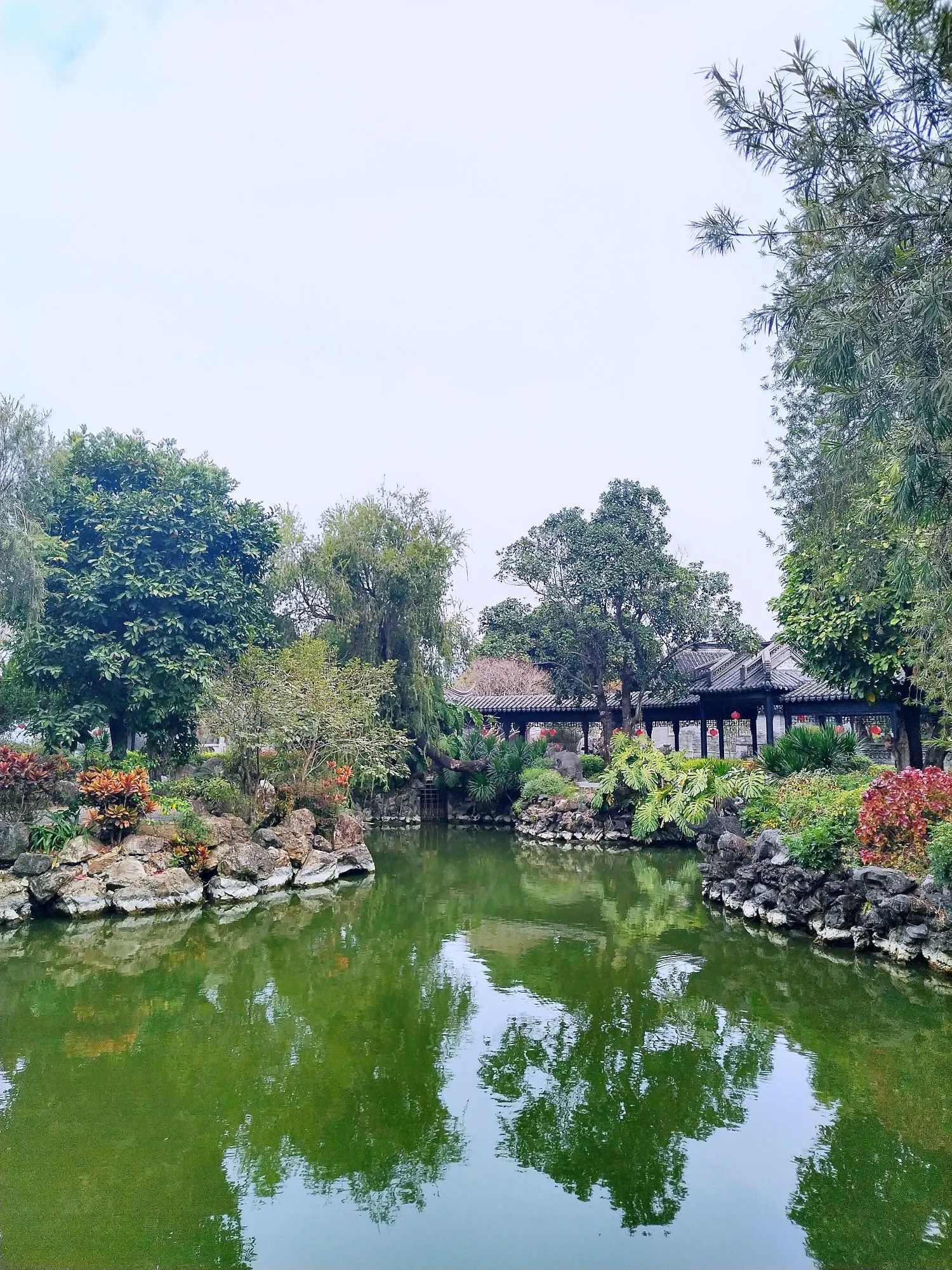 尤为值得一提的是詹园中的山水布局。园中的水系设计尤为出色,小桥流水,曲径通幽,仿佛一幅流动的山水画,让人在行走间不断发现新的惊喜。各式各样的奇峰怪石错落有致地分布在绿水之间,既有苏州园林的精巧堆叠,又融入了岭南园林的自然野趣,形成了一种独特的人文景观。