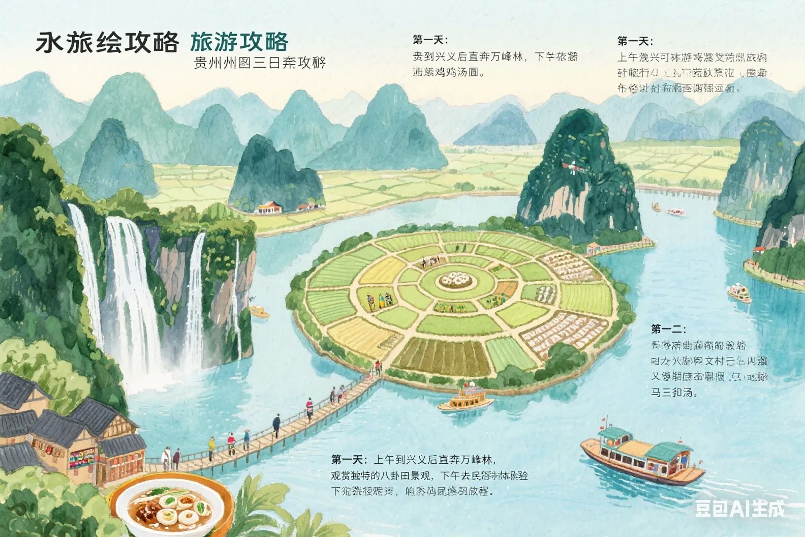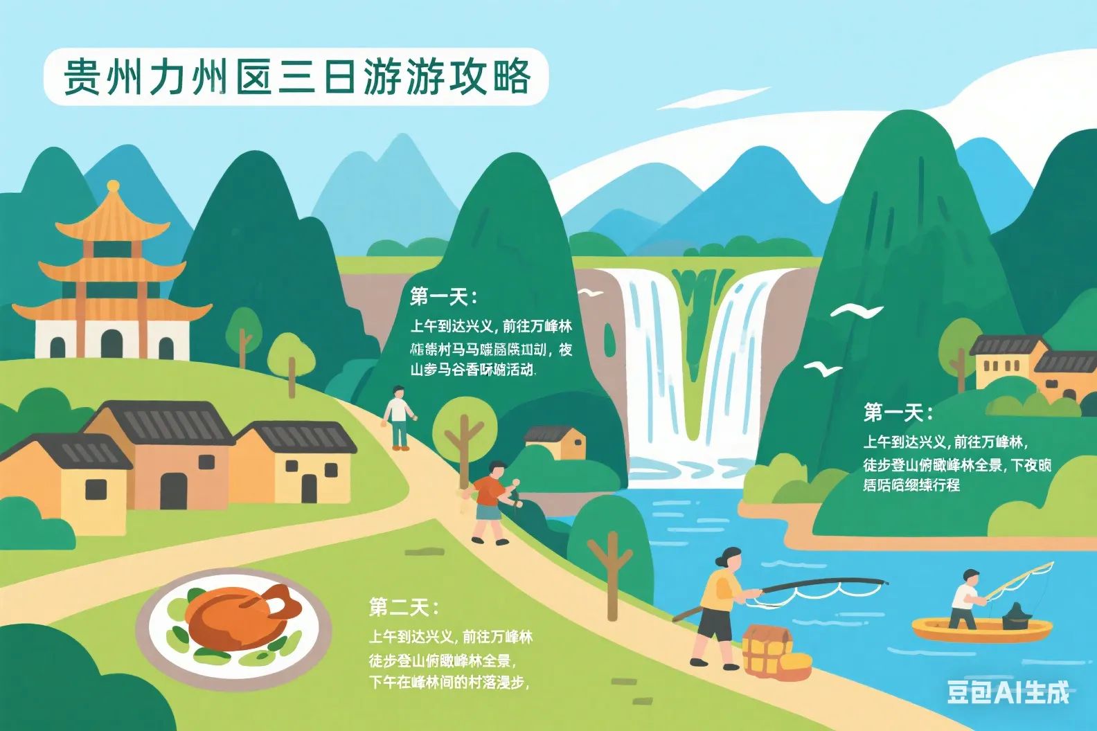 - 中午:在万峰湖附近的鱼庄品尝鲜美的鱼汤和其他河鲜。