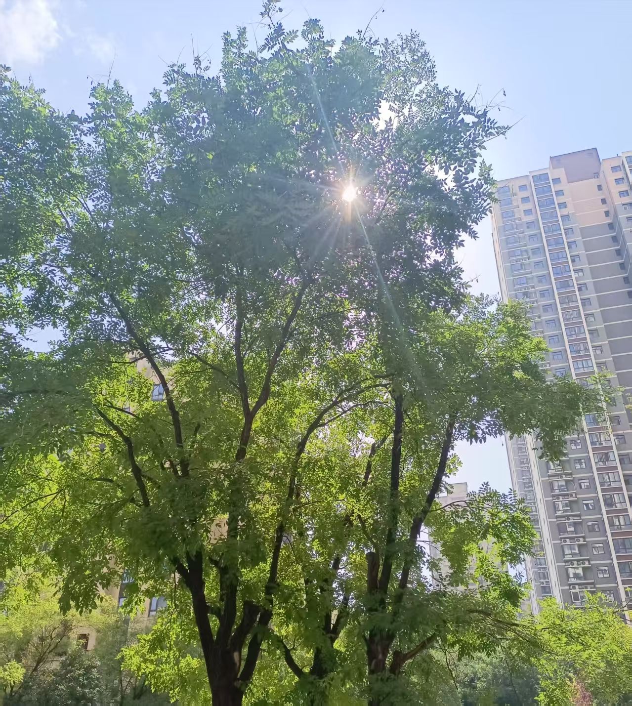 整整一个冬天,只剩下满树干枯枝丫,一派衰败颓废的景象。春天一到,个个焕发生机。短短十几天,棵棵披上绿装,变得枝繁叶茂,阳光下已现斑驳树影。