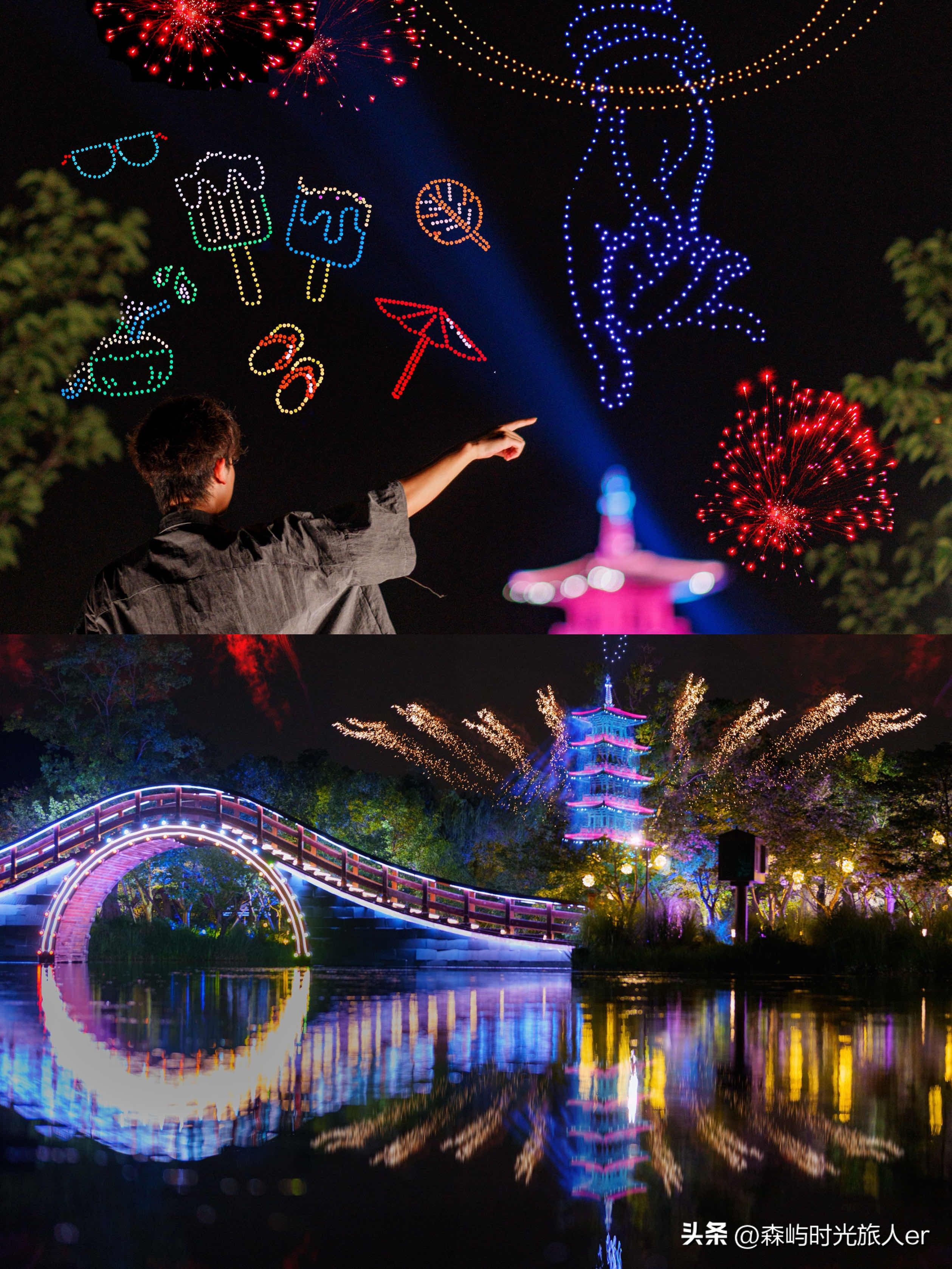想要占据无人机烟花秀的最佳观赏位,建议提前半小时到微笑广场占位哦。