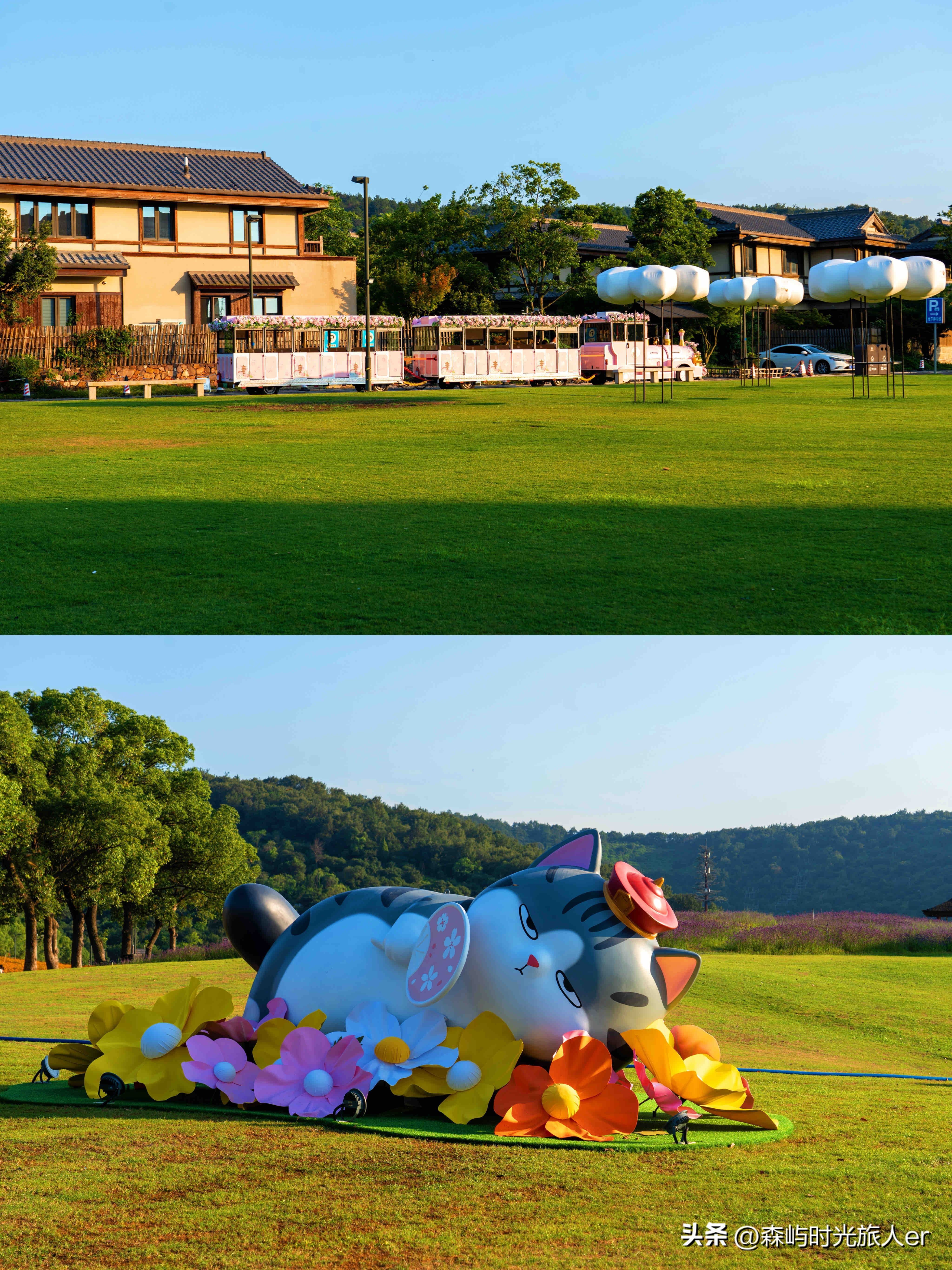 吾皇猫打卡点:萌趣值拉满!游客服务中心门口、大草坪、拈花福点、上下桥、微笑广场都有吾皇猫的身影,随手一拍都是治愈系大片,小朋友绝对超爱~