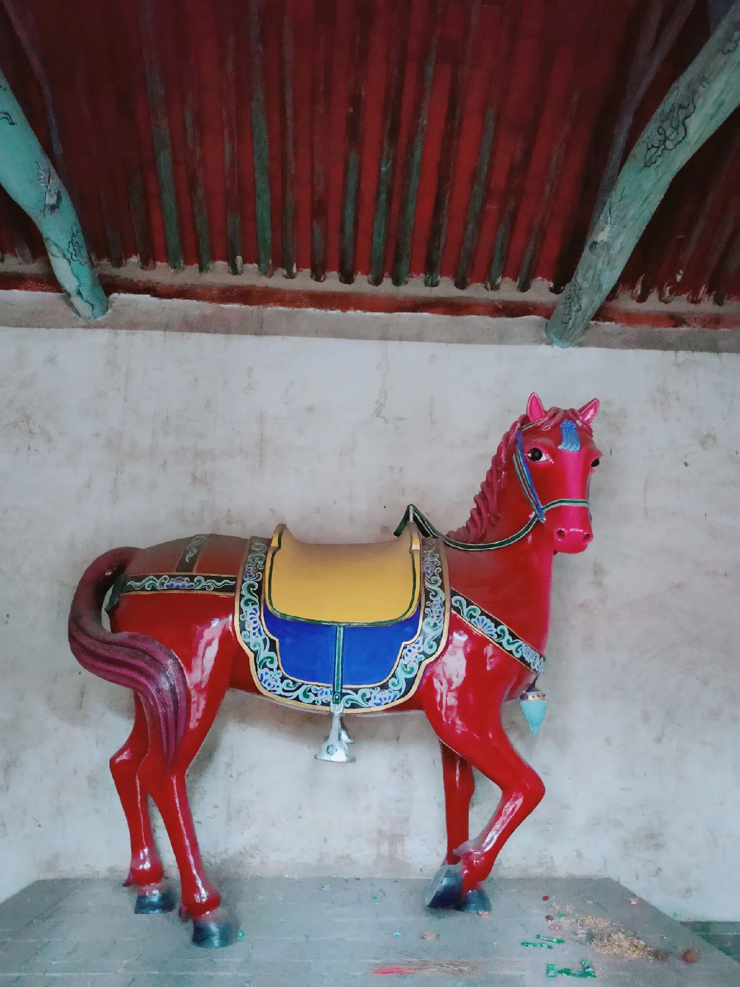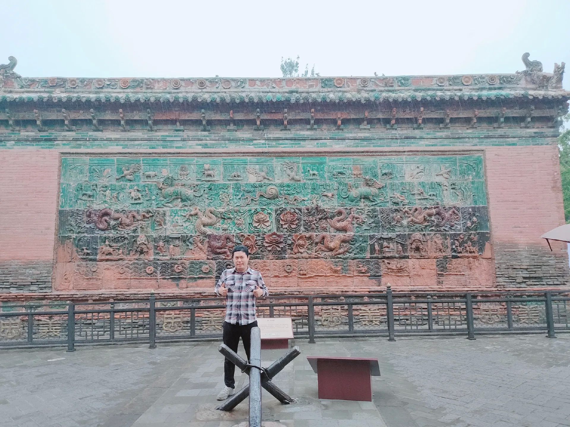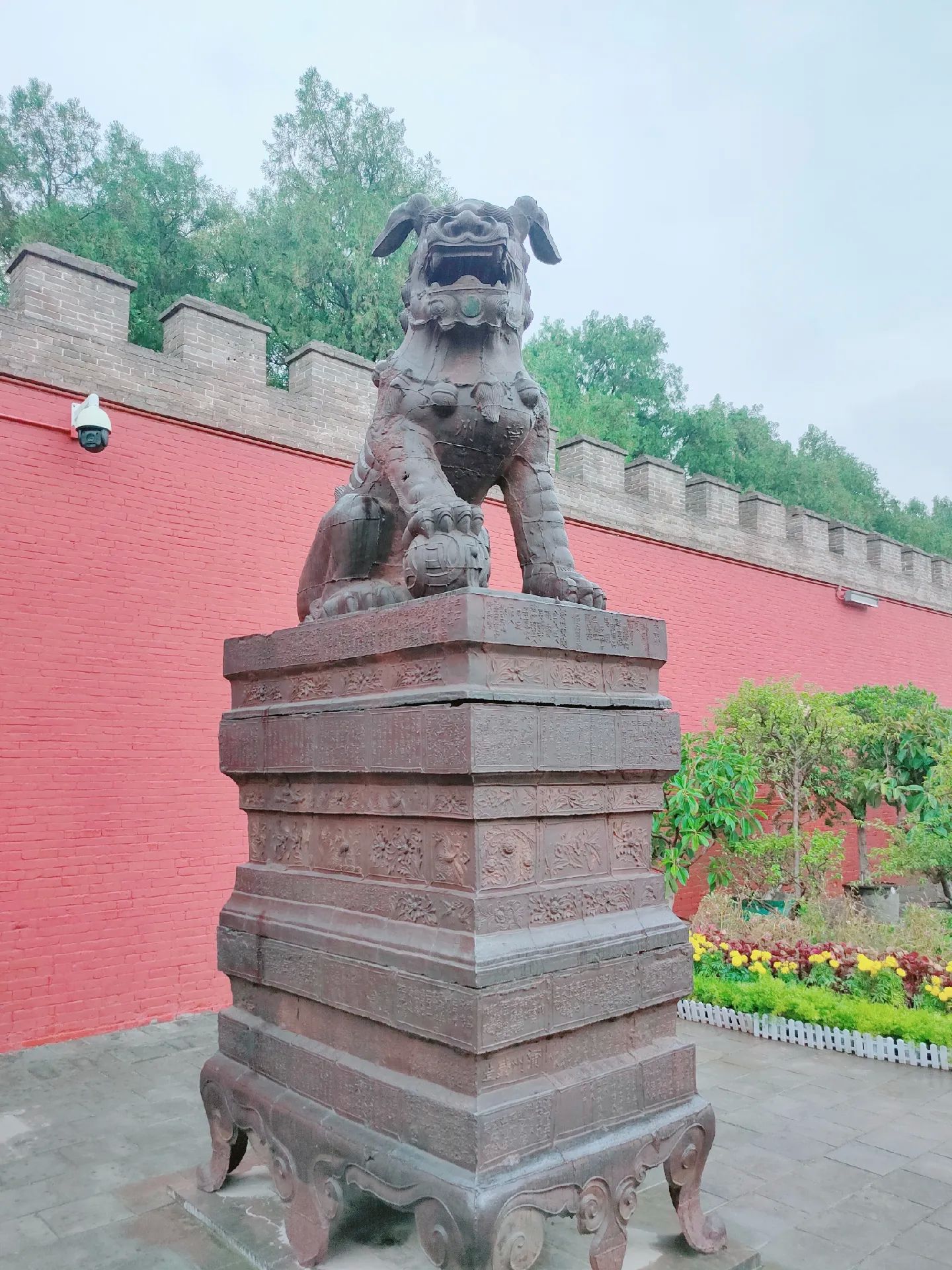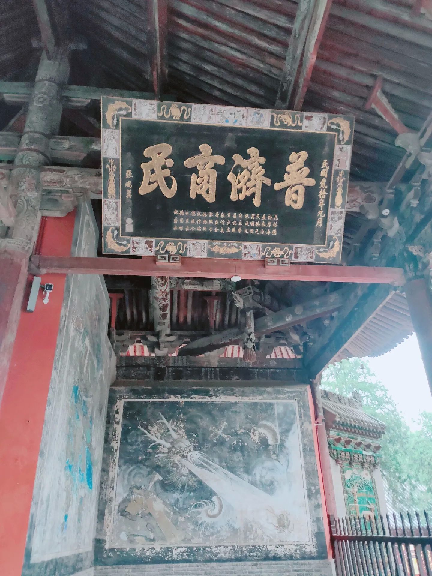 2 四龙壁位于关帝祖庙端门正南,是明宣德年间烧制的琉璃影壁。画面自上而下分为天地海三界,主体是四条蟠龙遨游飞动,衬以凤凰、麒麟、玉兔等瑞兽,赋予了诸多的传统文化内涵。