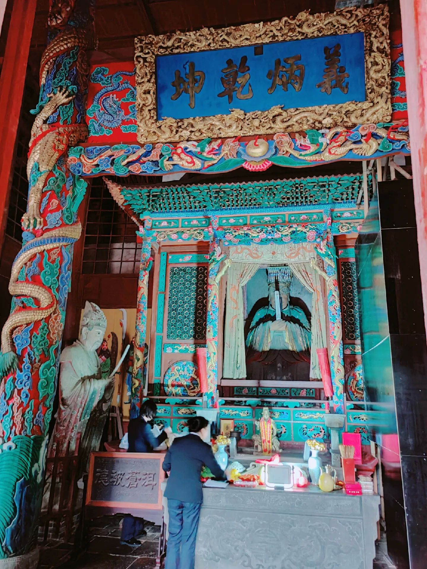 5 春秋楼位于关帝祖庙中轴线最后端,是关帝的寝宫。该楼又名麟经阁,因关公夜读春秋而得名。复建于明万历年间,面阔七间,进深六间,二层三檐歇山式建筑。一楼供奉关公戎装像,二楼供奉关公夜读《春秋》真身像,暖阁内壁板刻《春秋》全文,顶部悬垂三眼藻井,环楼四周挑承悬梁吊柱,皆为古建艺术珍品。值得说明的是,进入二层需要额外30元费用,如果没有特殊研究,可不用上去。
