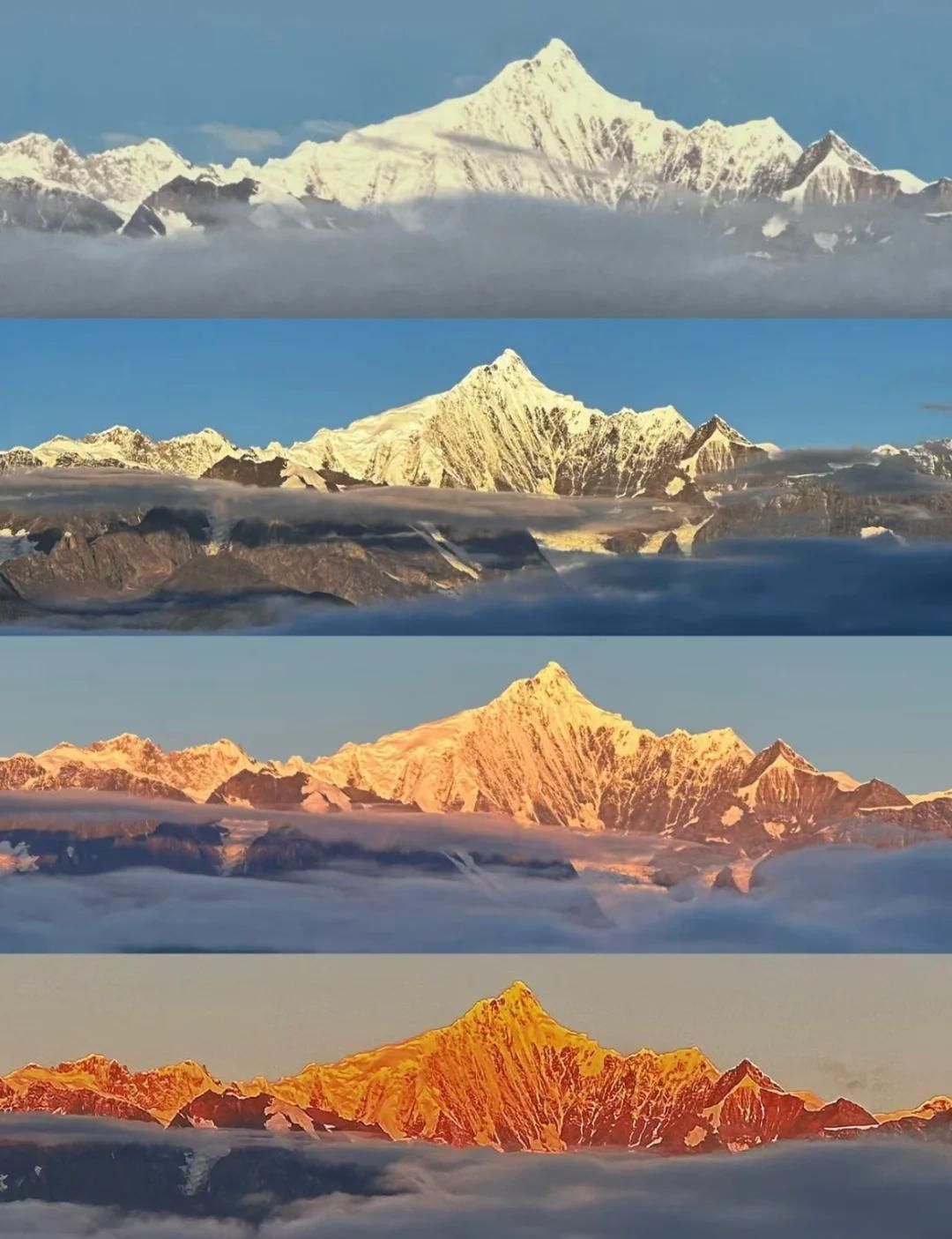梅里雪山:日照金山,雾浓顶观景台和飞来寺是最佳拍摄点。