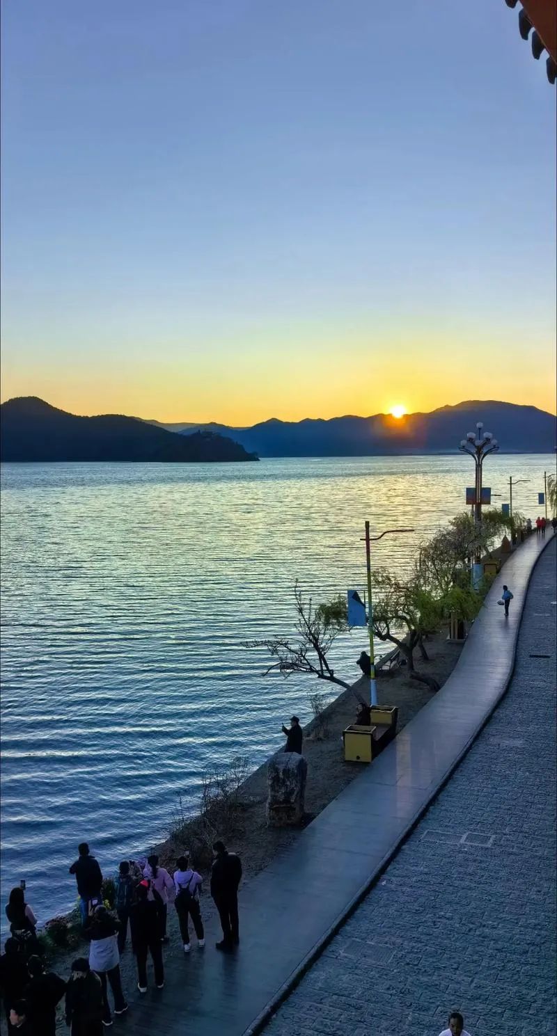 - 日落圣地:泸沽湖最佳日落观景地,橙红色湖面与彩船剪影美如油画。