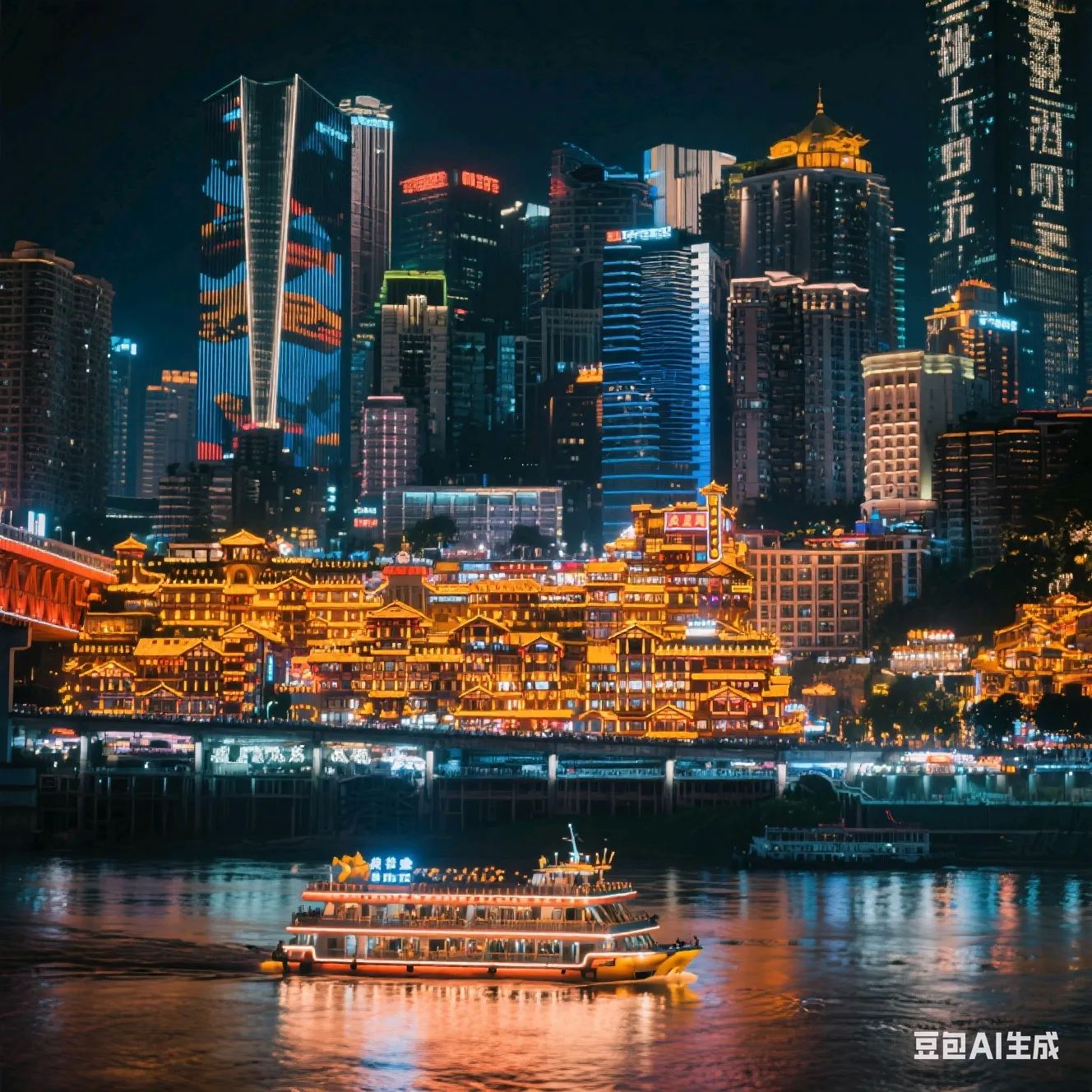 - 晚上:从解放碑步行街步行约600米到戴家巷崖壁步道,欣赏悬崖上的独特风景和特色小店。随后前往洪崖洞,观赏巴渝特色的山地吊脚楼夜景,品尝美食。最后在洪崖洞客运码头乘坐两江游游船,沿途欣赏朝天门、湖广会馆等景点,全方位饱览山城美景。