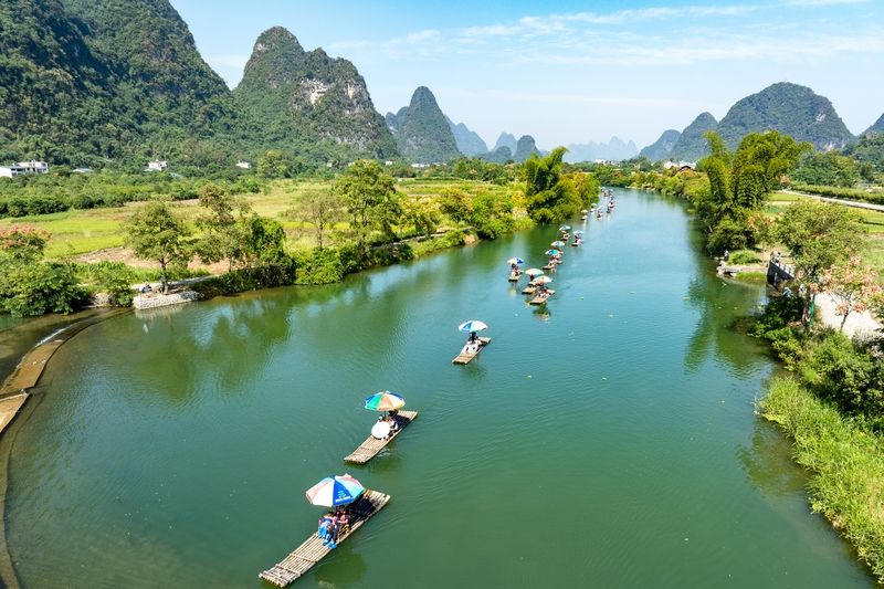 · 山水甲天下,沉浸式体验:从漓江竹筏到遇龙河漂流,亲身感受“舟行碧波上,人在画中游”的意境。