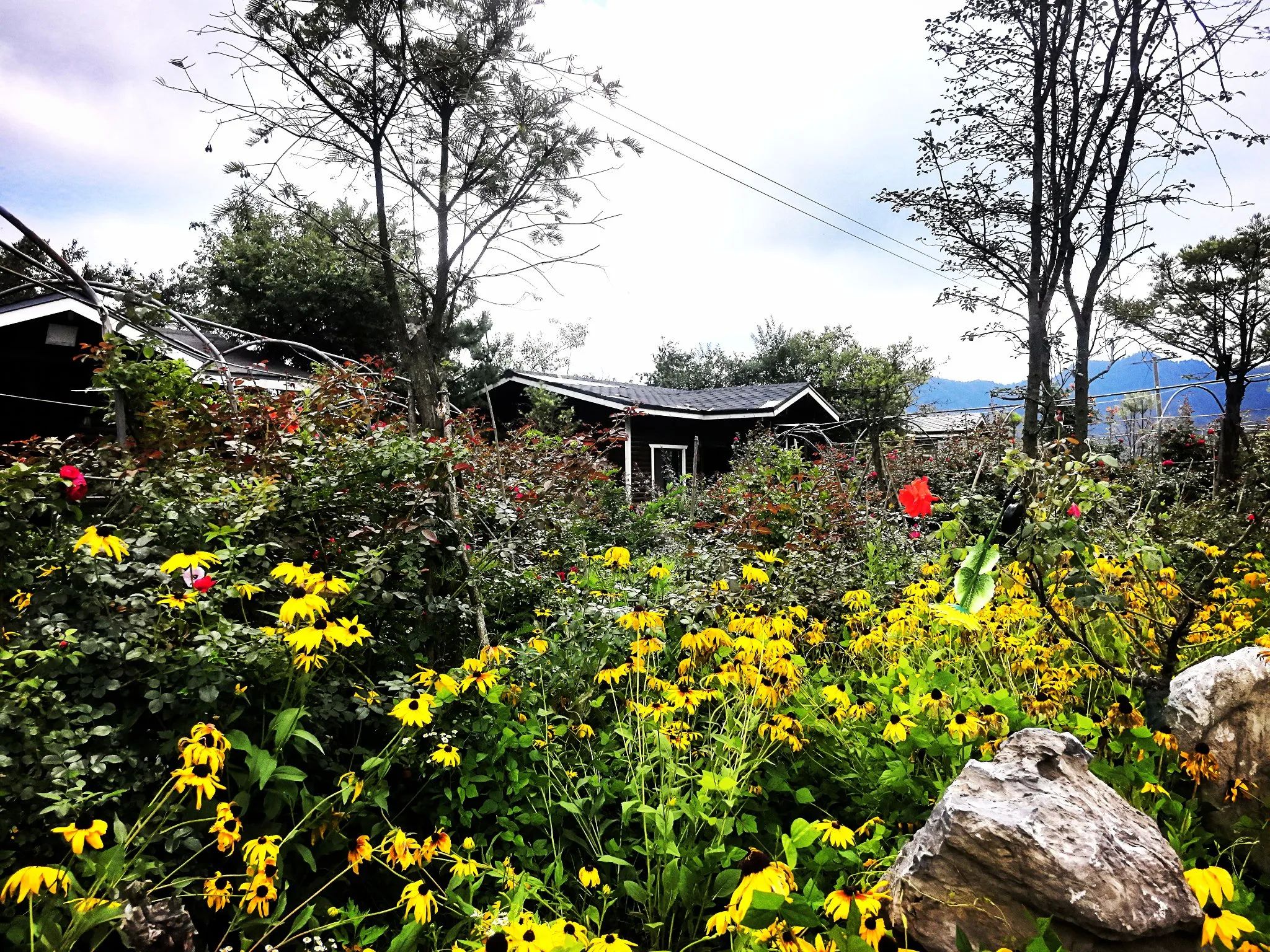 在麓园,站在山顶,对面的大山仿佛近在眼前,山峦绵延起伏,山高林密,各类植物相互交错,形成一片绿色的海洋,山色由深至浅向远方延伸,令人百看不厌。近处的山边野花遍地,民居隐藏在树荫和花丛之中。在羊山没看到羊,倒是看到了梅花鹿。