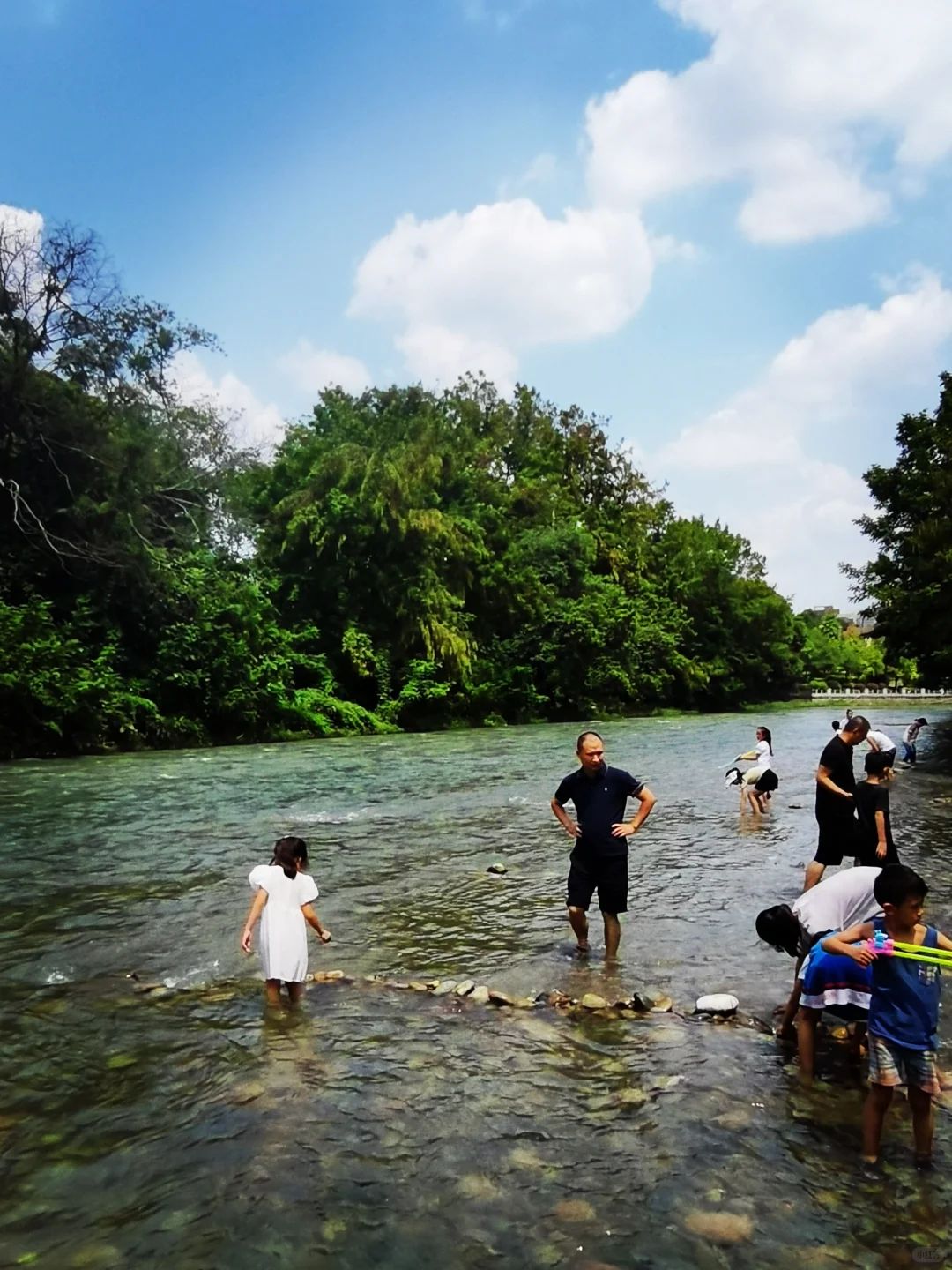 河道中间有深有浅,一定要随时看好孩子,只能在浅水区玩水,别去深水区,安全第一