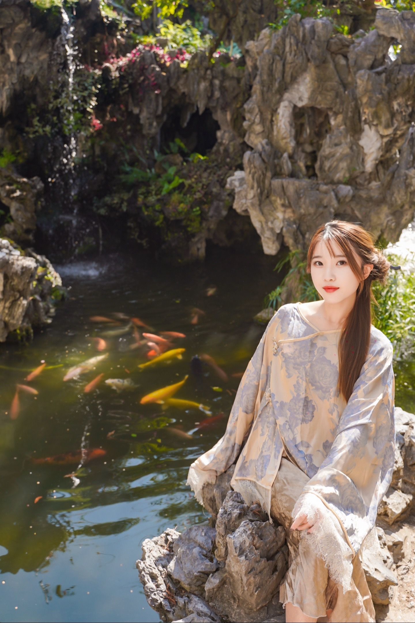 很火的“洗头”照机位就在金鱼池旁边的假山