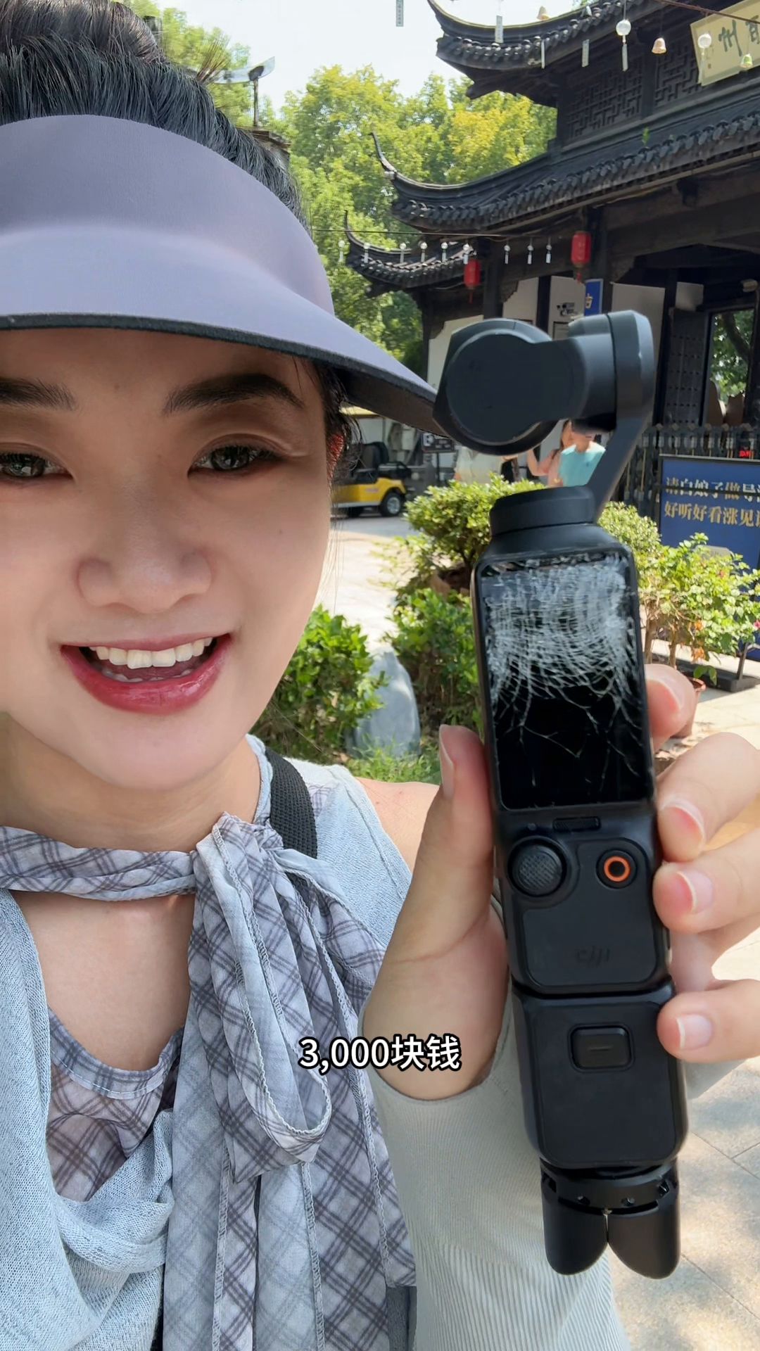 ·第一站:金山寺。门票65,刚进来的金山寺,看到这边荷花挺好看的,准备拍一下。把相机从兜里拿出来,一下子兜有松紧,一下子没拿住,弹飞了撞到水泥地上了,就成这样子了,3000块钱。不过这荷叶还是挺好看的,不管了先玩。