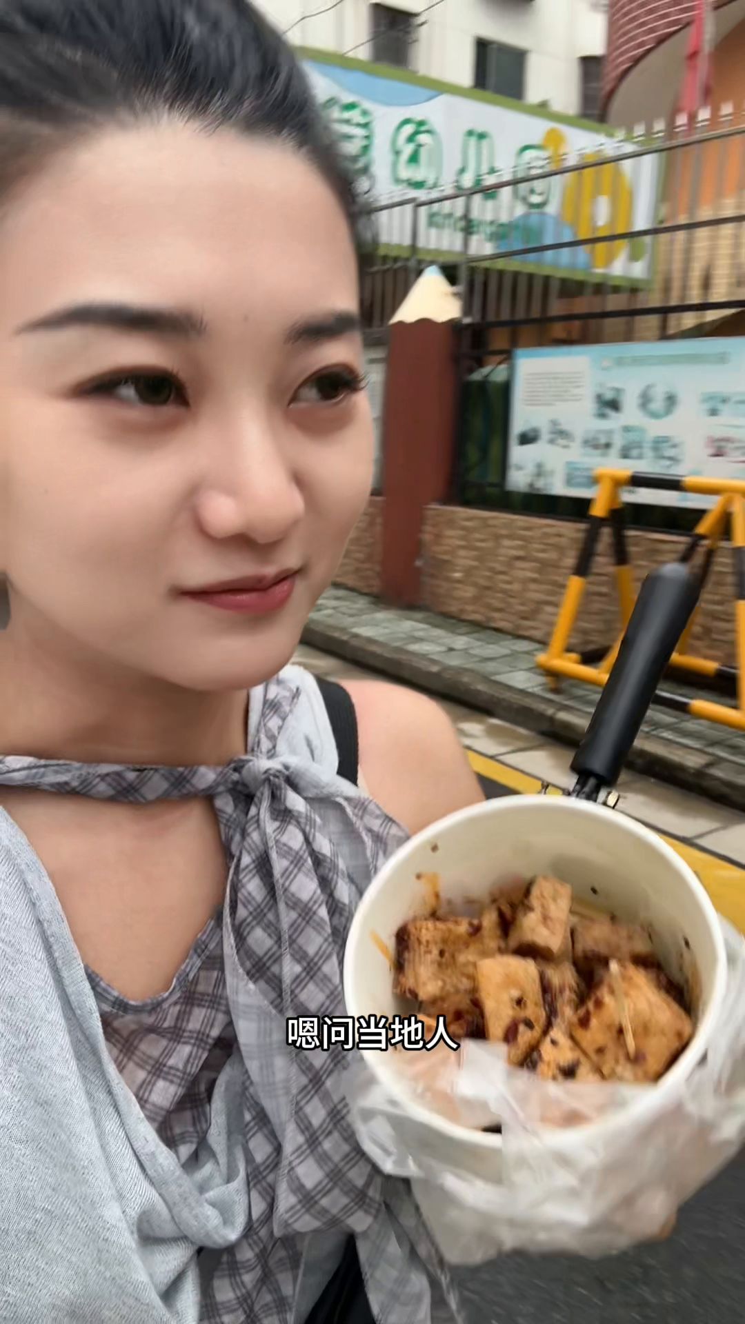 出来之后又尝试了一下网友推荐我去的老太豆干,他家就卖这么几样,我就点了两串尝尝鲜。这个臭干,我以为会像臭豆腐一样臭的那种,没想到它一点都不臭,然后外面酥酥的挺香的,嚼起来甜咸辣口的。问当地人,他们就说三山也没什么玩头。