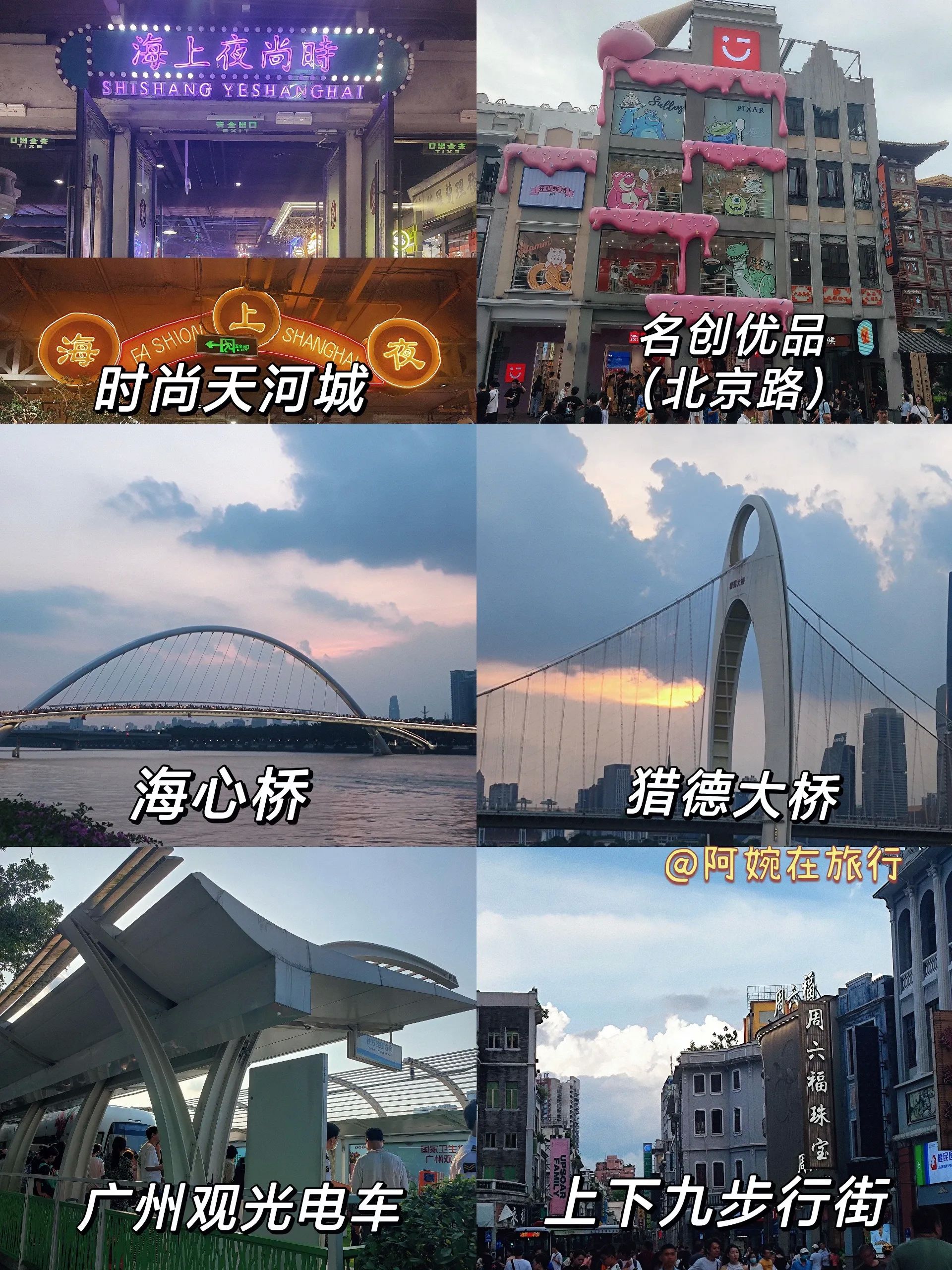 - 海心桥:连接广州塔与二沙岛,造型独特,桥上看珠江两岸,傍晚日落超绝。